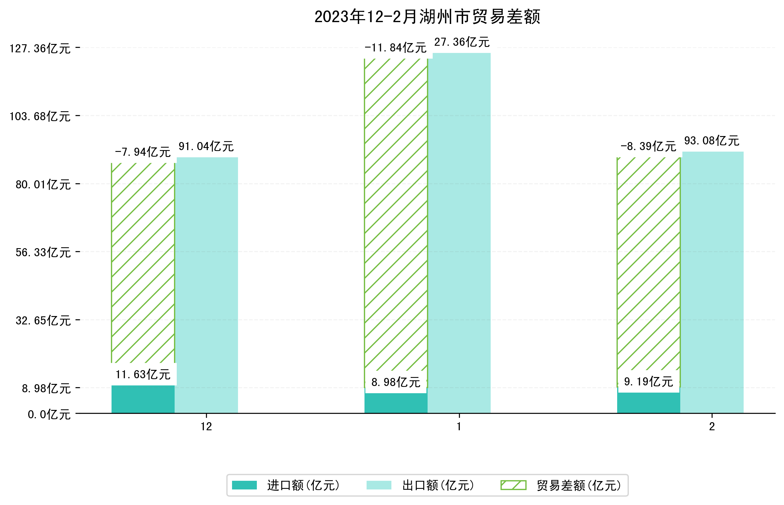 2023年2月湖州市进出口总额及进出口差额统计分析