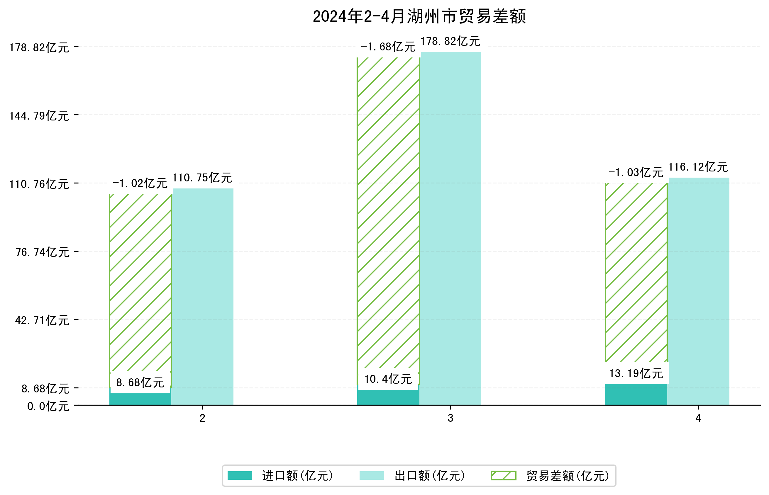(图四:2024年2-4月湖州市贸易差额)