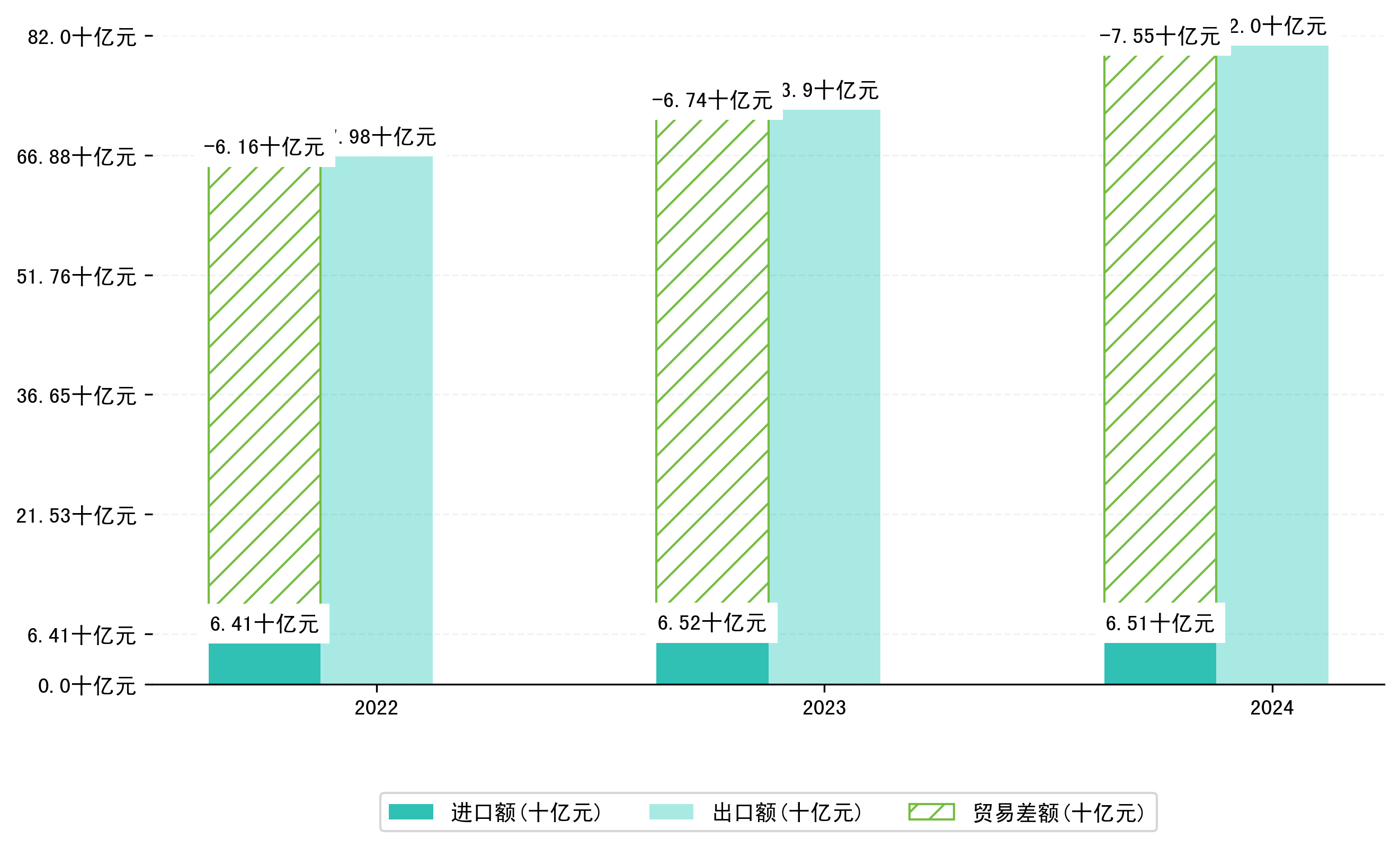 以人民币计,2024年1-6月湖州市贸易差额为754,8782,6597万元(贸易顺差),相比上年同期增加了81,1152,6410万元,同比增加12.04%。