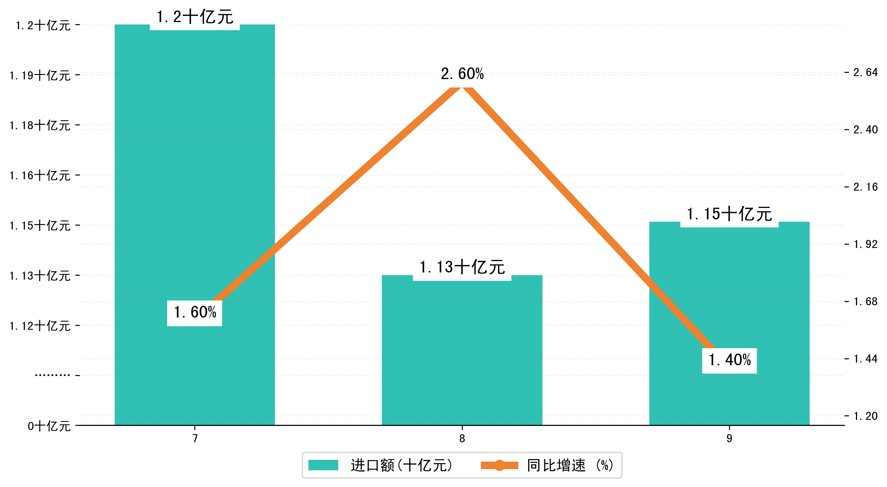 以人民币计,2023年1-9月湖州市进口额为100,0462.7261万元,相比上年同期增加了1,8184.3247万元,同比增加了1.40%。