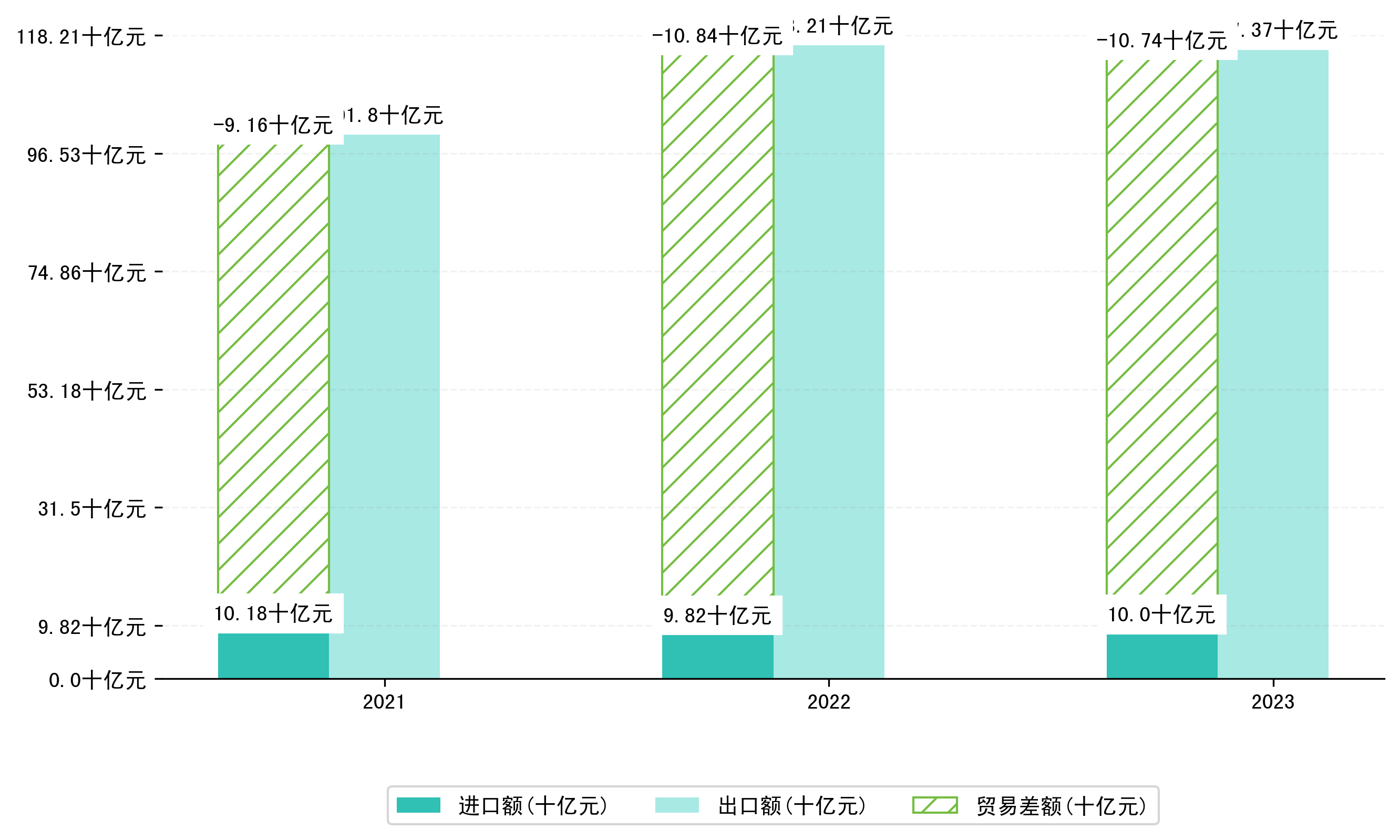 以人民币计,2023年1-9月湖州市贸易差额为1073,6459,5597万元(贸易顺差),相比上年同期减少了10,2436,8616万元,同比减少-0.95%。