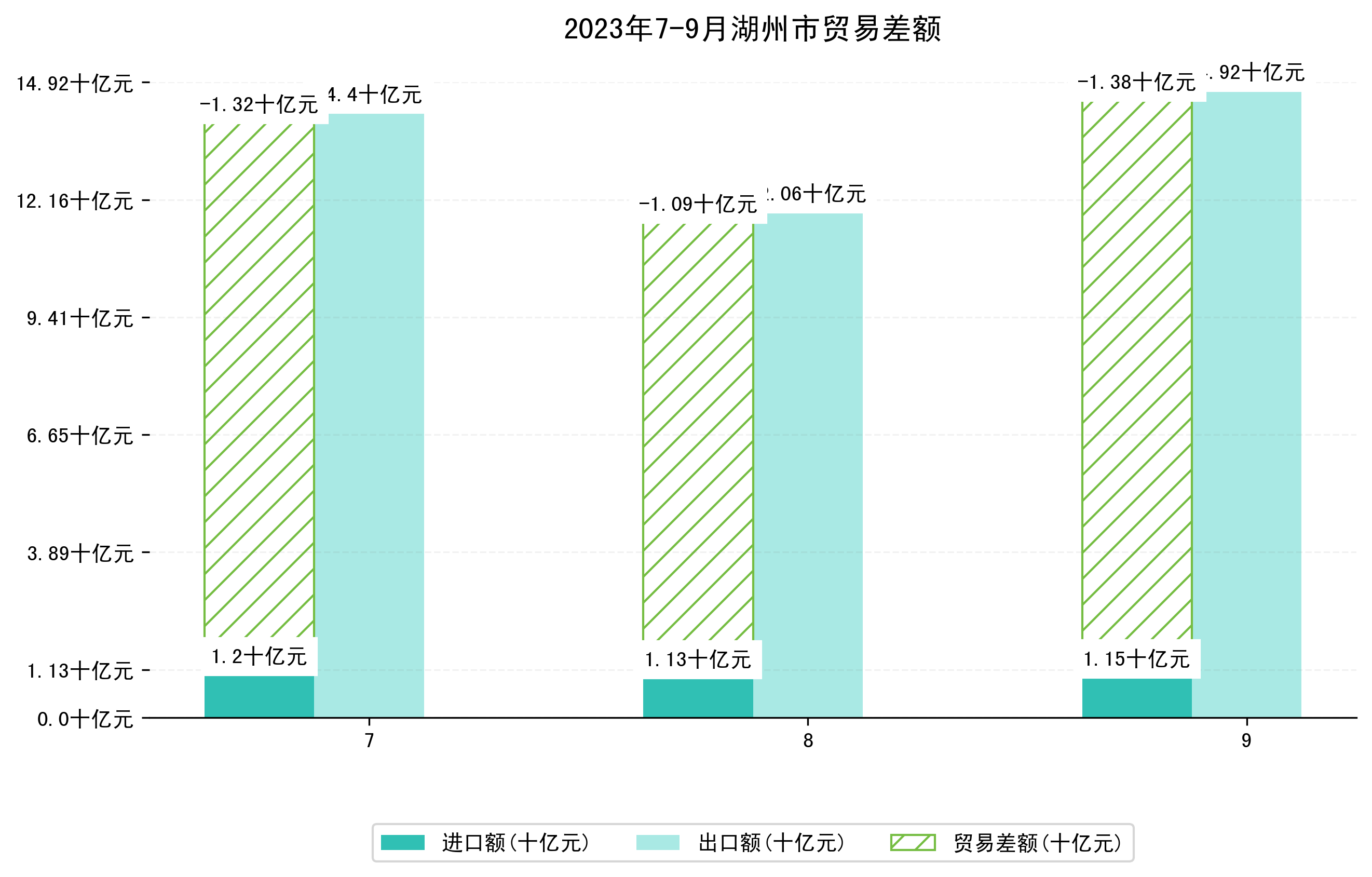 2023年9月湖州市进出口总额及进出口差额统计分析