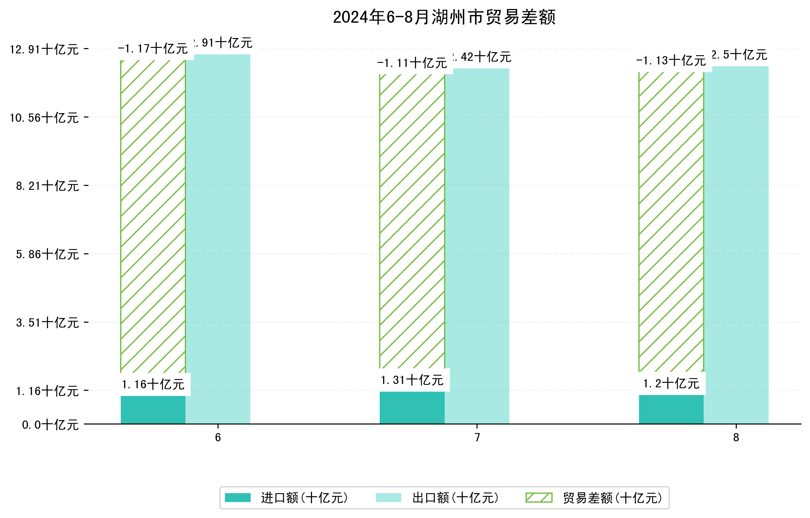 2024年8月湖州市进出口总额及进出口差额统计分析