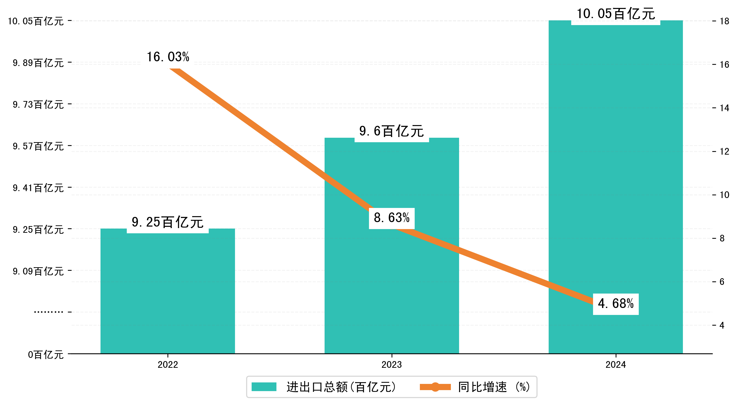 以人民币计,2024年1-7月湖州市进出口总额为1005,2110.2534万元,相比上年同期增加了44,9756.4413万元,同比增加了5.70%。