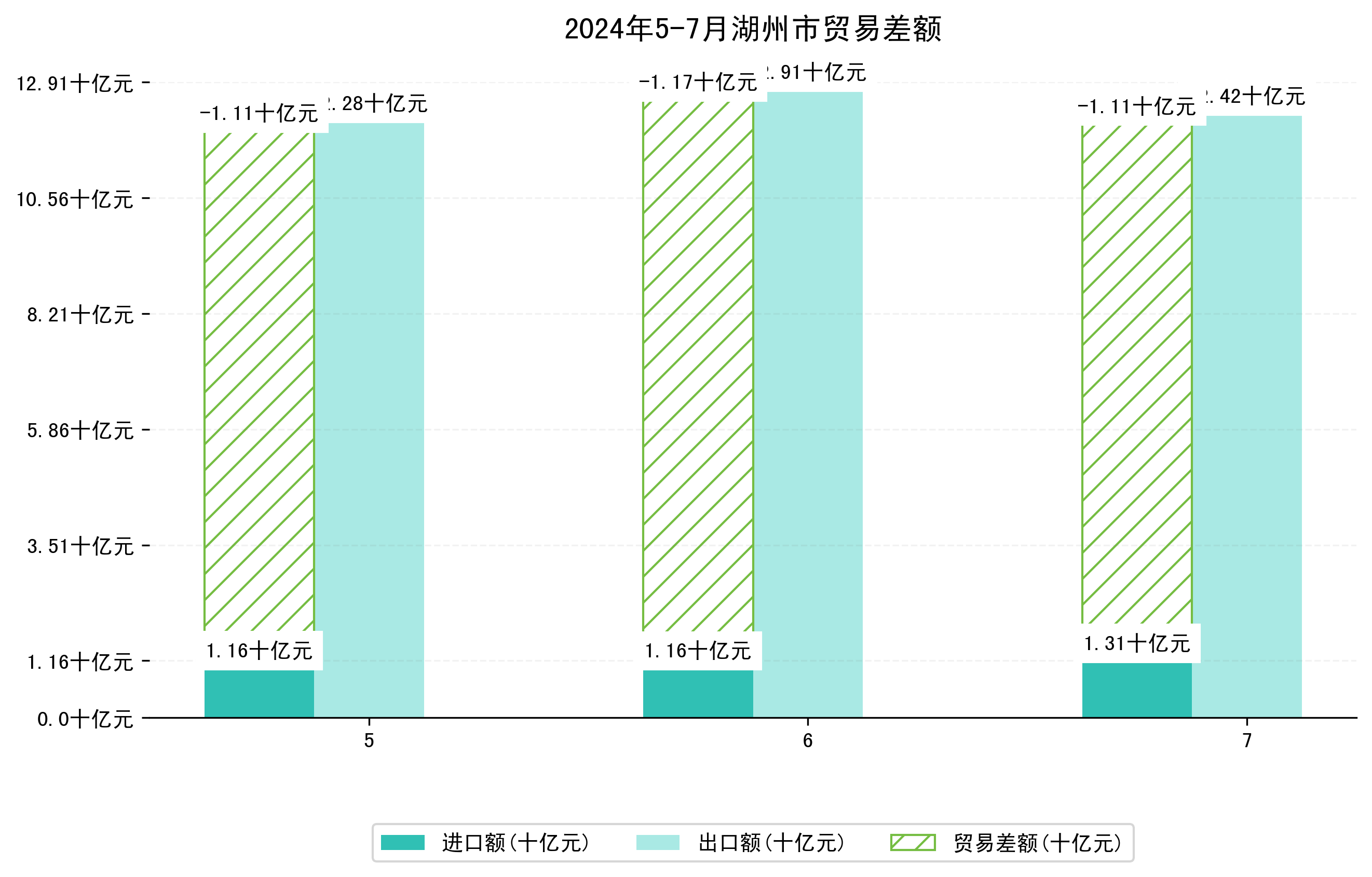 2024年7月湖州市进出口总额及进出口差额统计分析