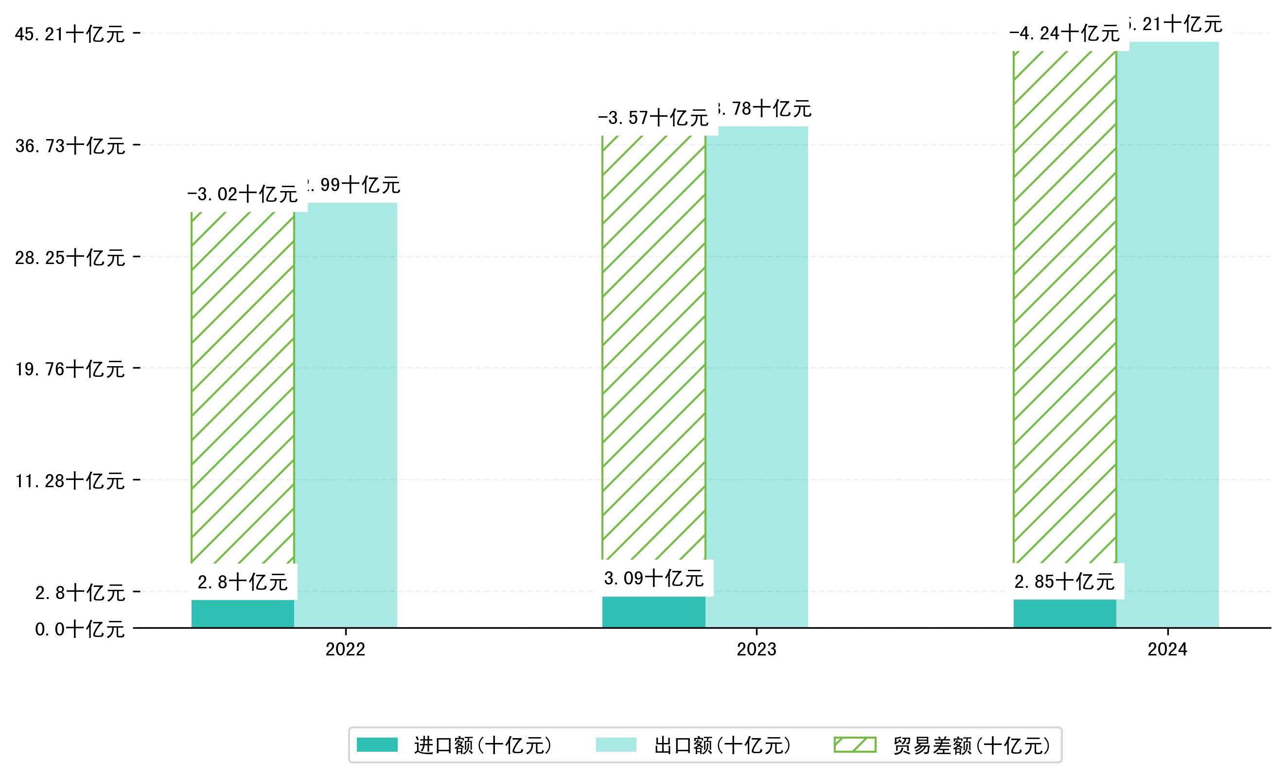 以美元计,2024年3月湖州市贸易差额为23,7073,4968万美元(贸易顺差),相比上月增加了9,3471,6765万美元;相比上年同期增加了1,0602,3577万美元,同比增加4.68%。