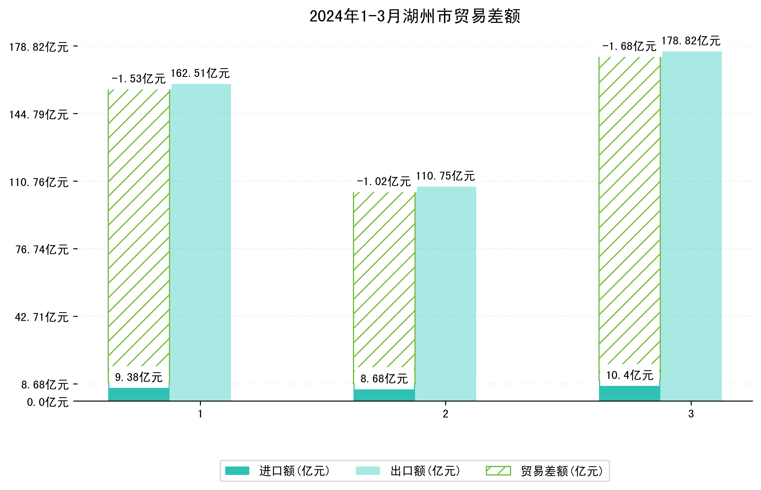 2024年3月湖州市进出口总额及进出口差额统计分析
