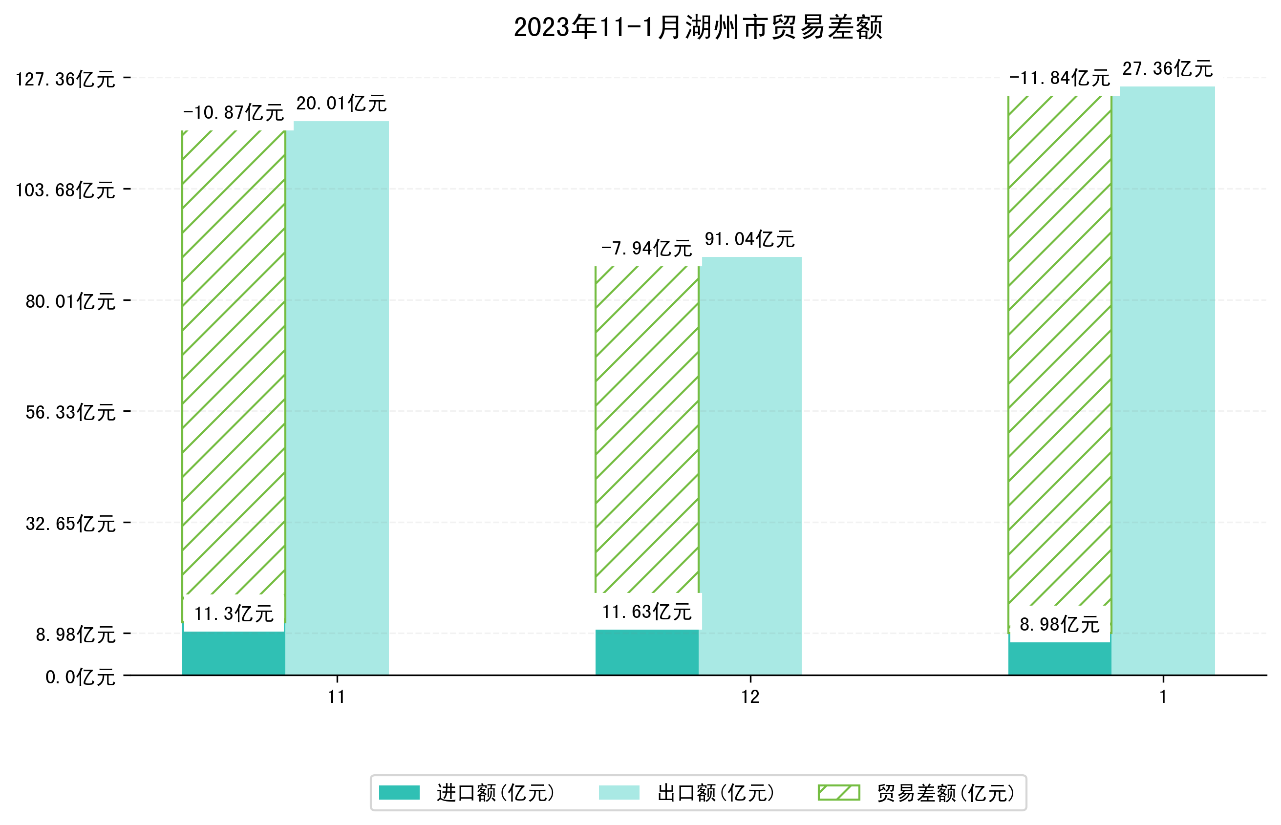 2023年1月湖州市进出口总额及进出口差额统计分析