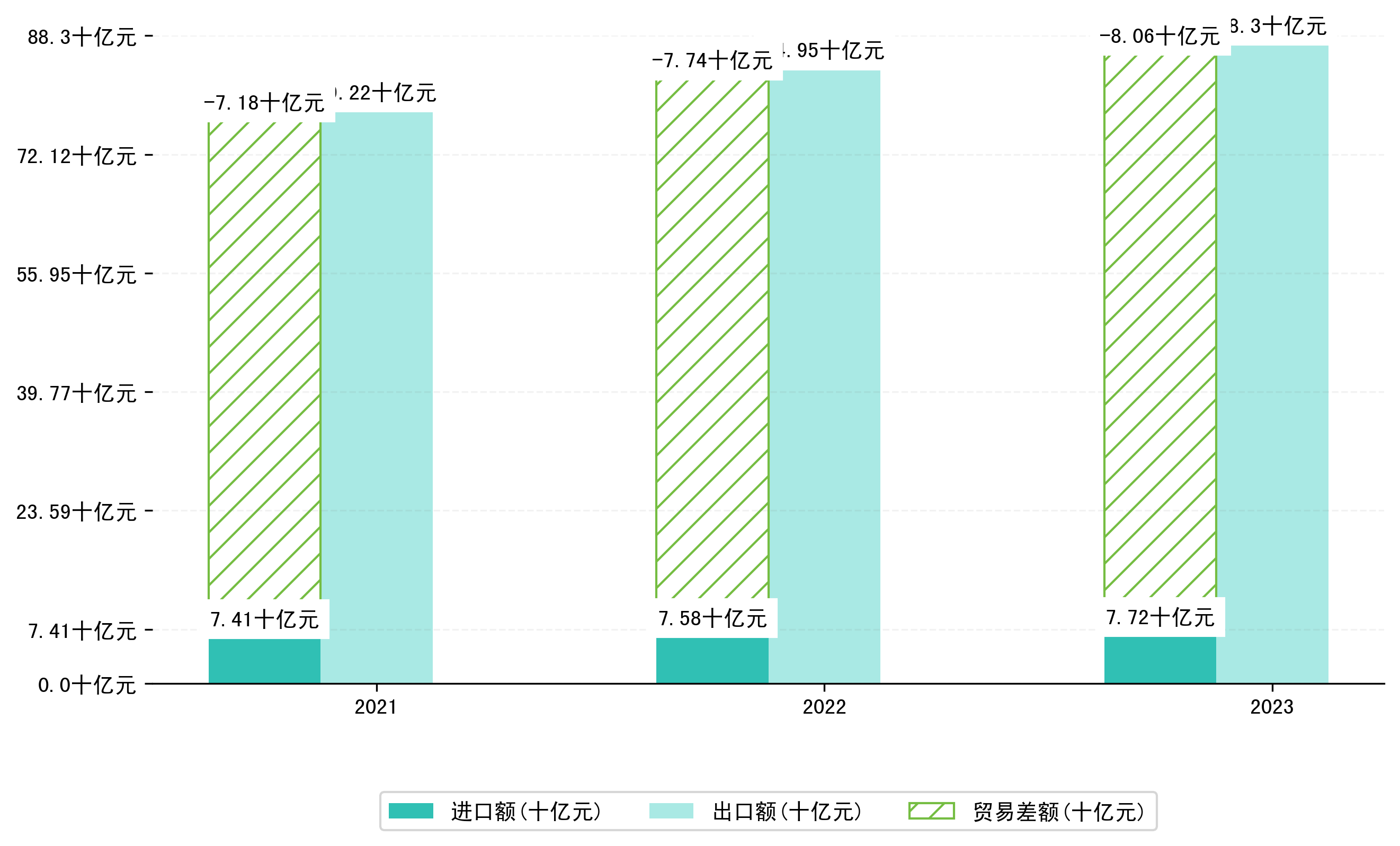 以人民币计,2023年1-7月湖州市贸易差额为805,7423,1685万元(贸易顺差),相比上年同期增加了31,9729,1673万元,同比增加4.13%。