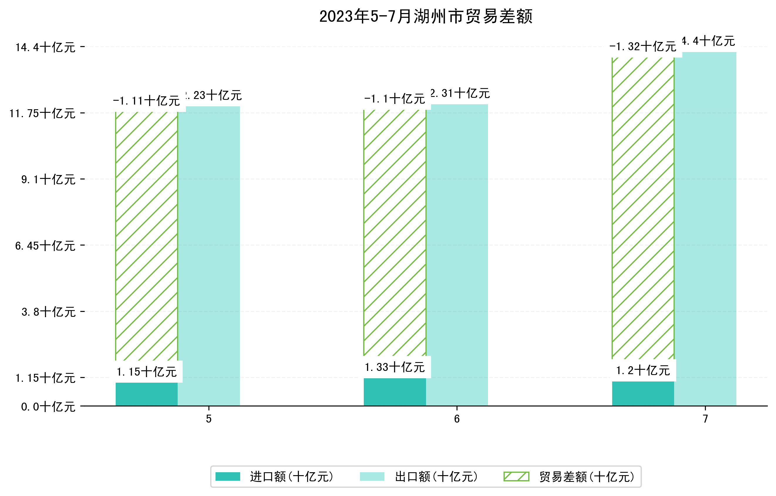 2023年7月湖州市进出口总额及进出口差额统计分析