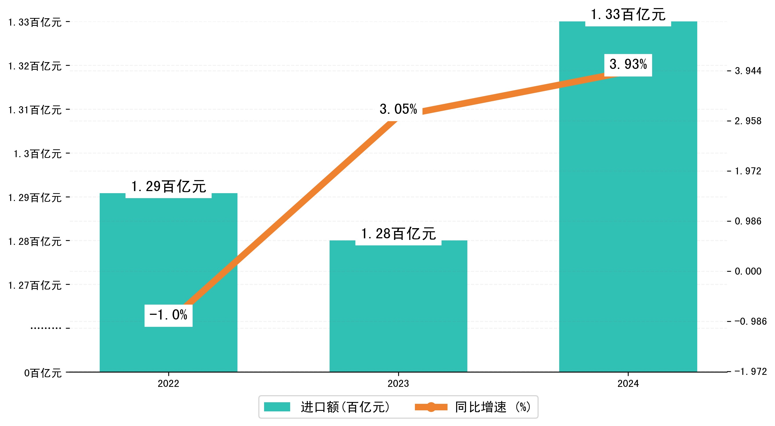 以人民币计,2024年1-12月湖州市进口额为133,3922.0889万元,相比上年同期增加了5,0381.8085万元,同比增加了3.80%。