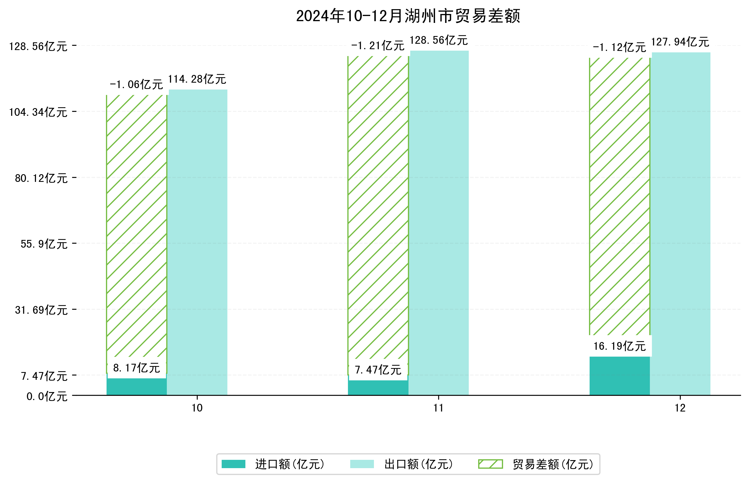 2024年12月湖州市进出口总额及进出口差额统计分析