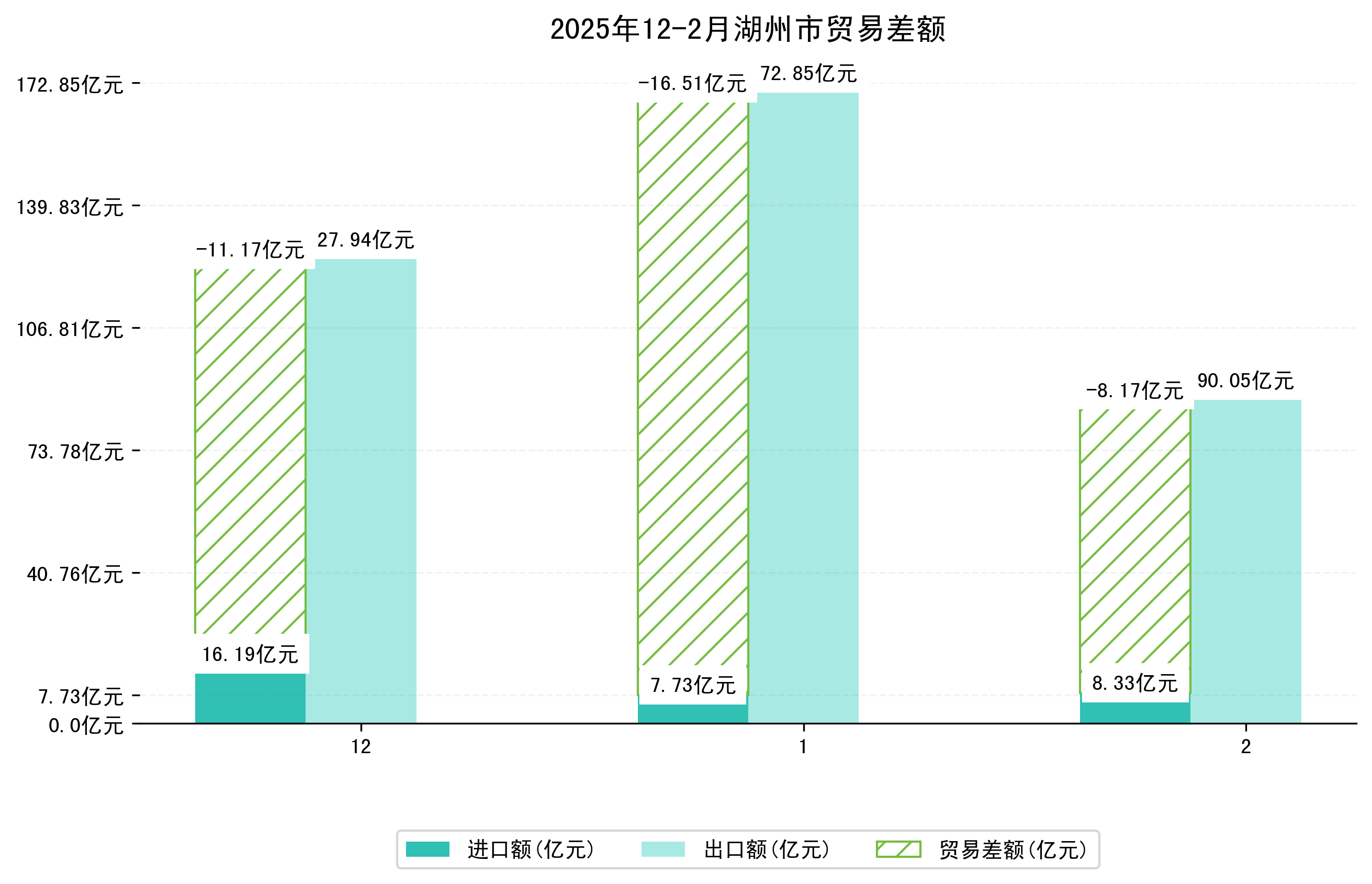 2025年2月湖州市进出口总额及进出口差额统计分析