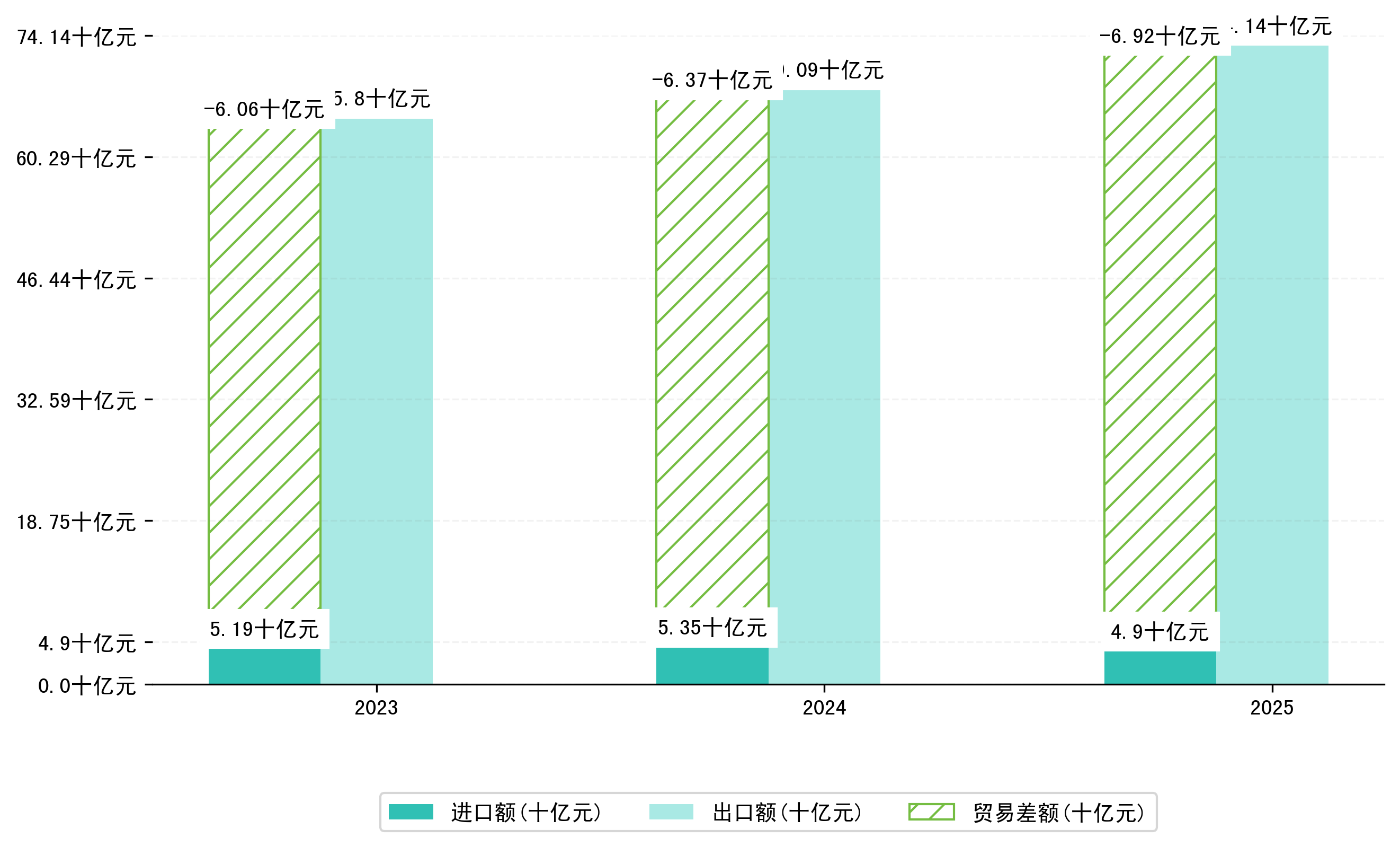 以美元计,2025年1-5月湖州市贸易差额为96,3949,8334万美元(贸易顺差),相比上年同期增加了6,6685,4673万美元,同比增加7.43%。