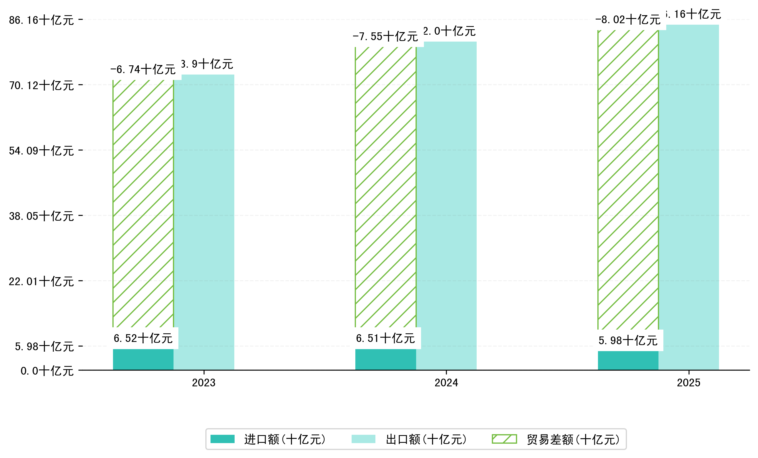 以人民币计,2025年6月湖州市贸易差额为109,3860,7050万元(贸易顺差),相比上月减少了3,8189,0366万元,即5156,9141万美元;相比上年同期减少了8,1120,4750万元,同比减少-6.9%。
