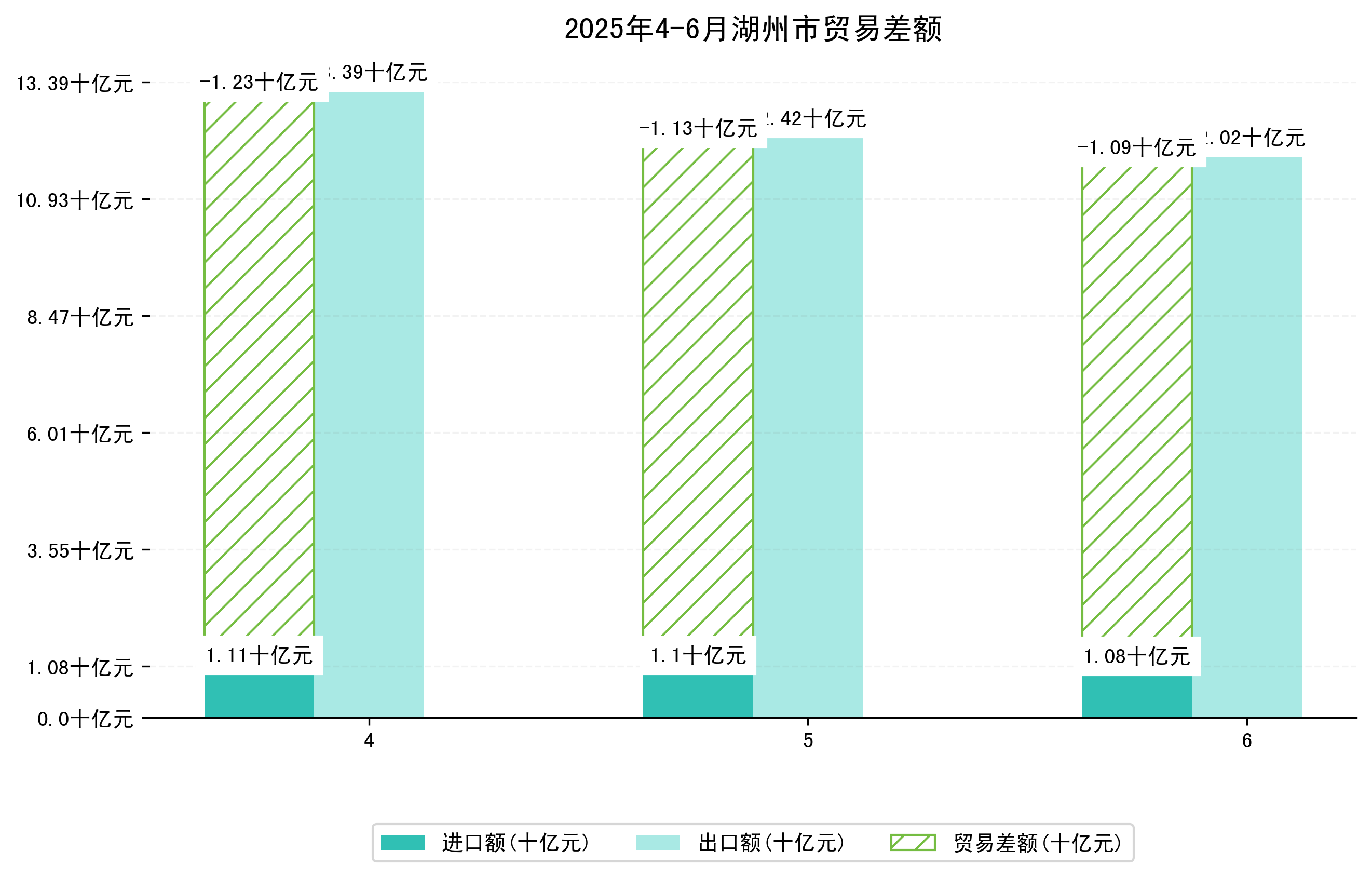 2025年6月湖州市进出口总额及进出口差额统计分析
