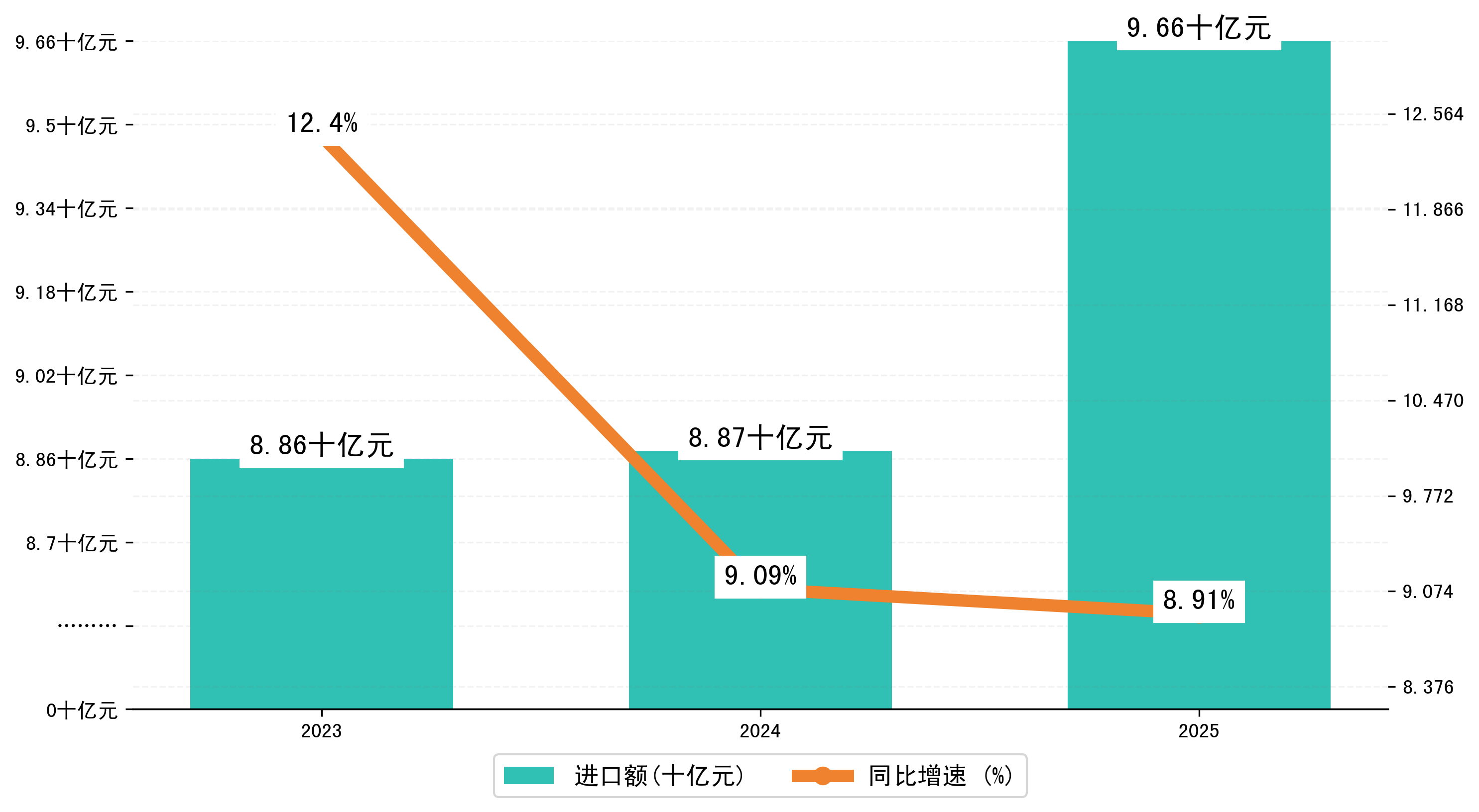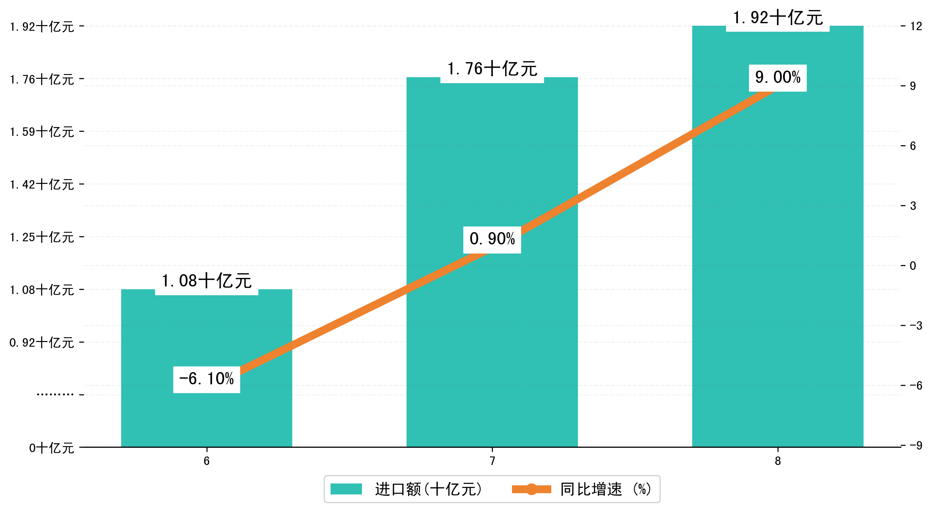 以人民币计,2025年1-8月湖州市进口额为96,6082.0681万元,相比上年同期增加了7,8995.3043万元,同比增加了9.00%。