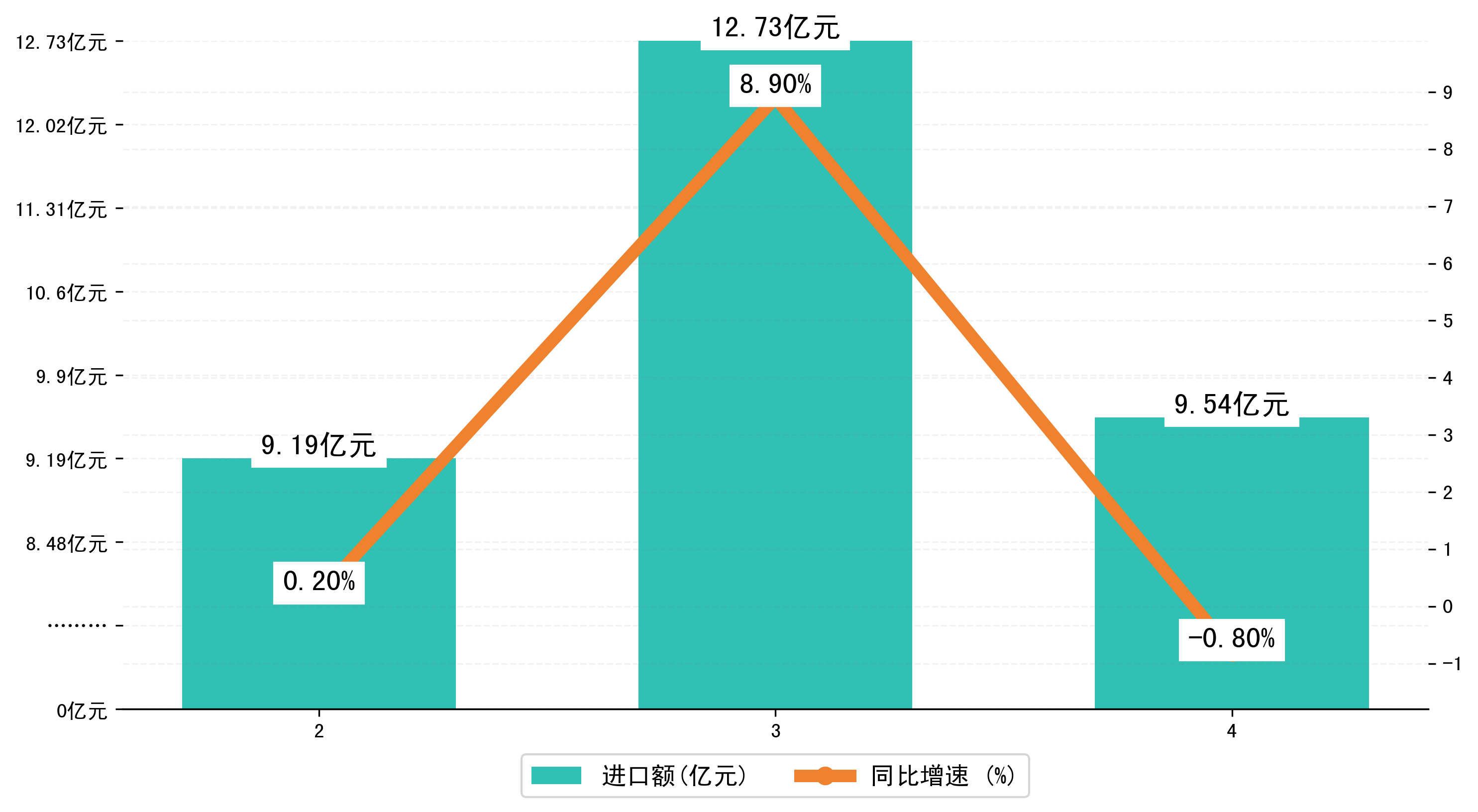 以人民币计,2023年4月湖州市进口额为9,5358.679万元,相比上月减少了3,1947.7151万元;相比上年同期减少了2,7891.0192万元,同比减少了-0.80%。