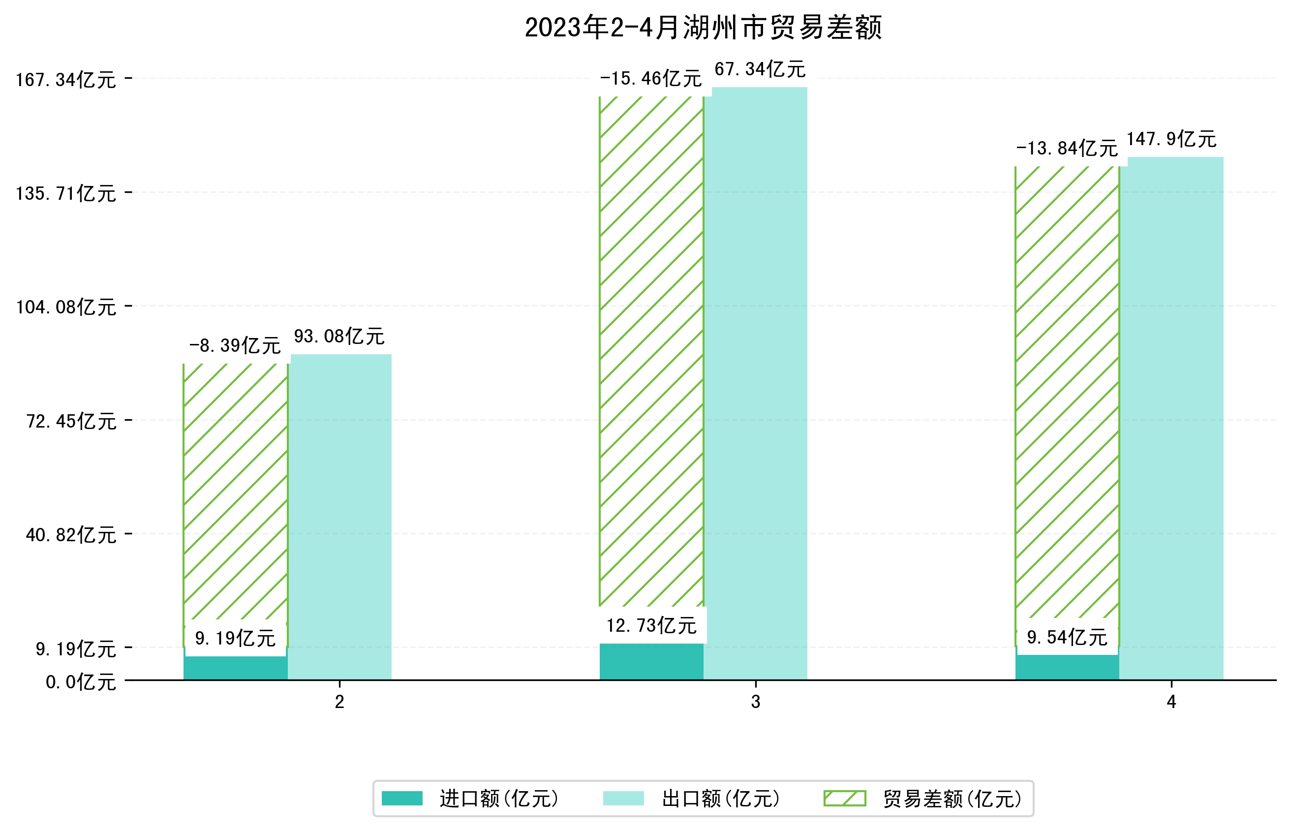 2023年4月湖州市进出口总额及进出口差额统计分析