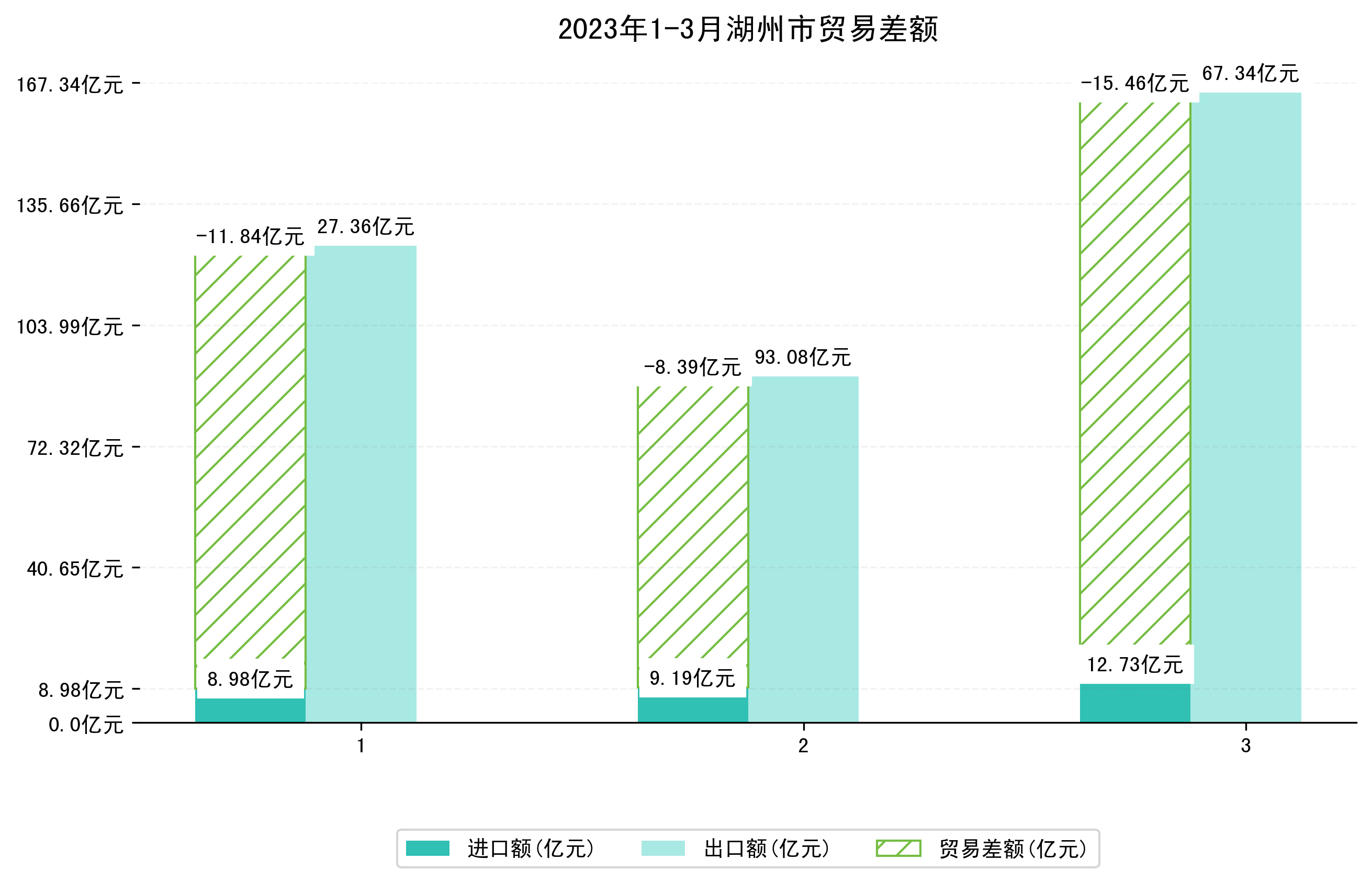 (图一:2023年1-3月湖州市进出口总额)