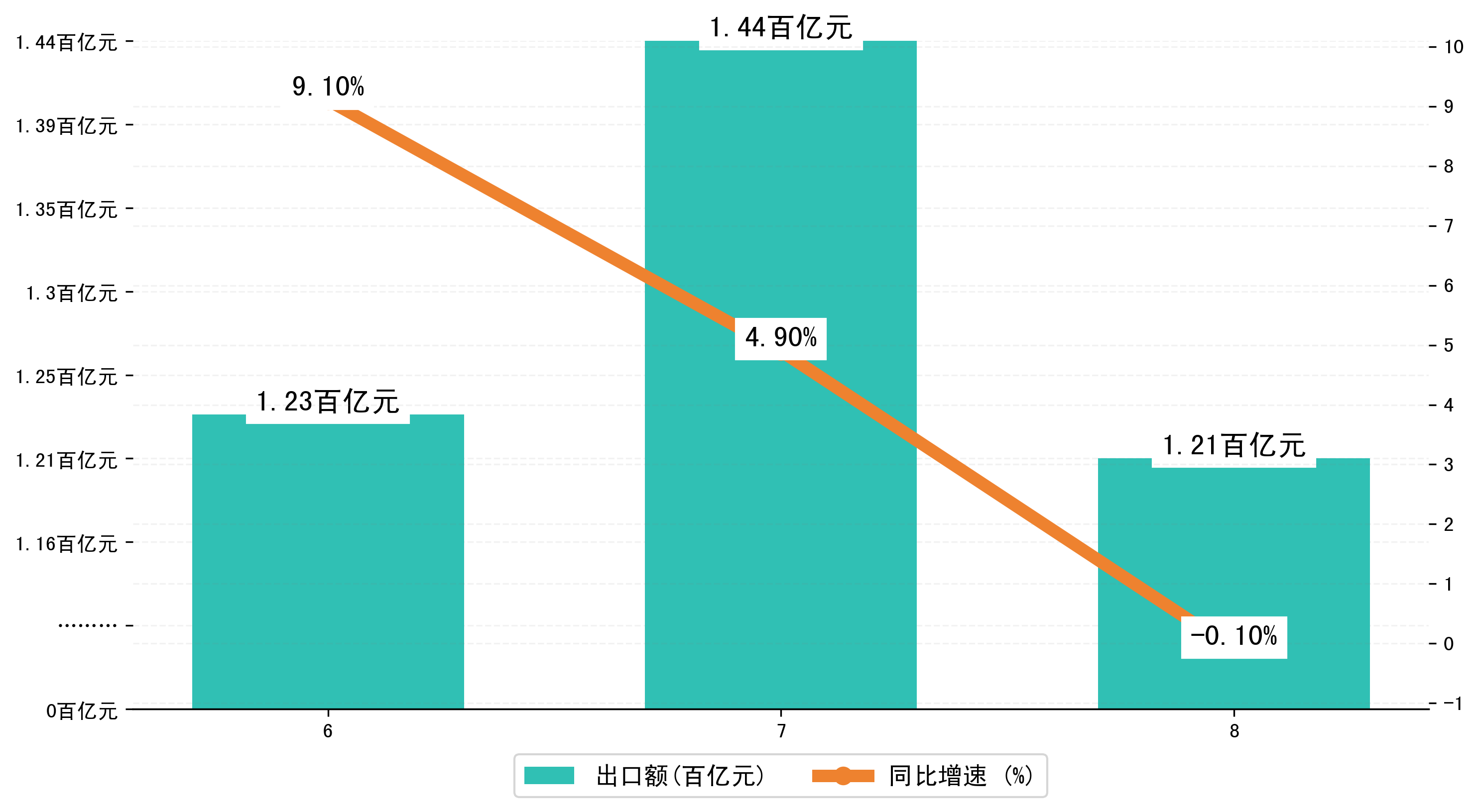 (图二:2023年6-8月湖州市出口额)