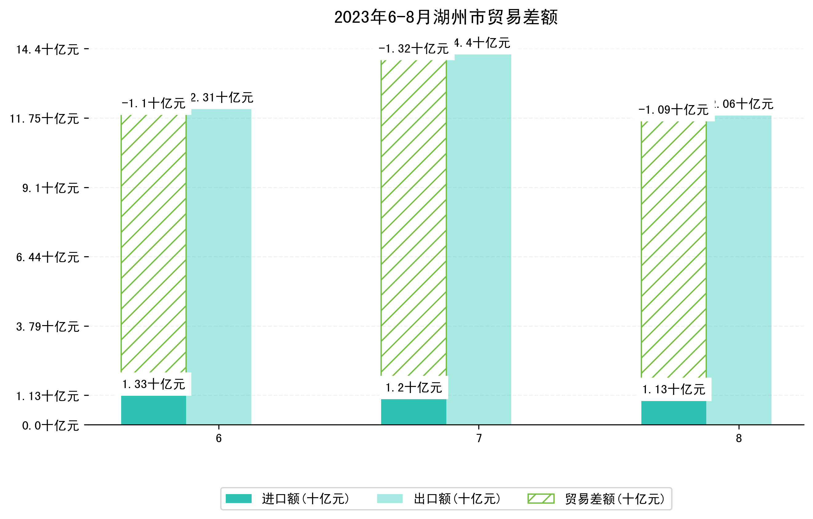(图四:2023年6-8月湖州市贸易差额)