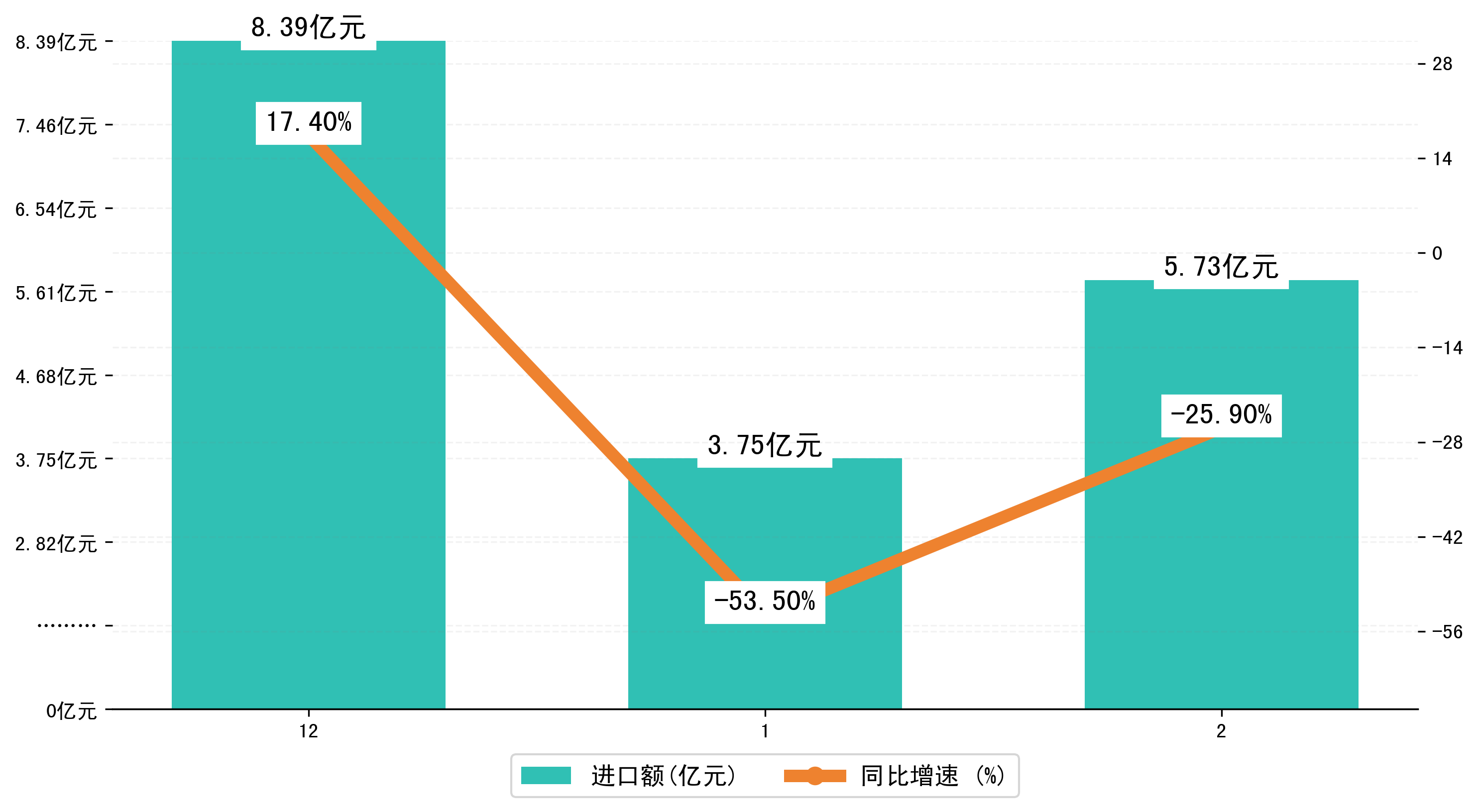 以美元计,2023年1-2月吉安市进口额为1,3829.4826万美元,相比上年同期减少了6258.9492万美元,同比减少-31.20%。