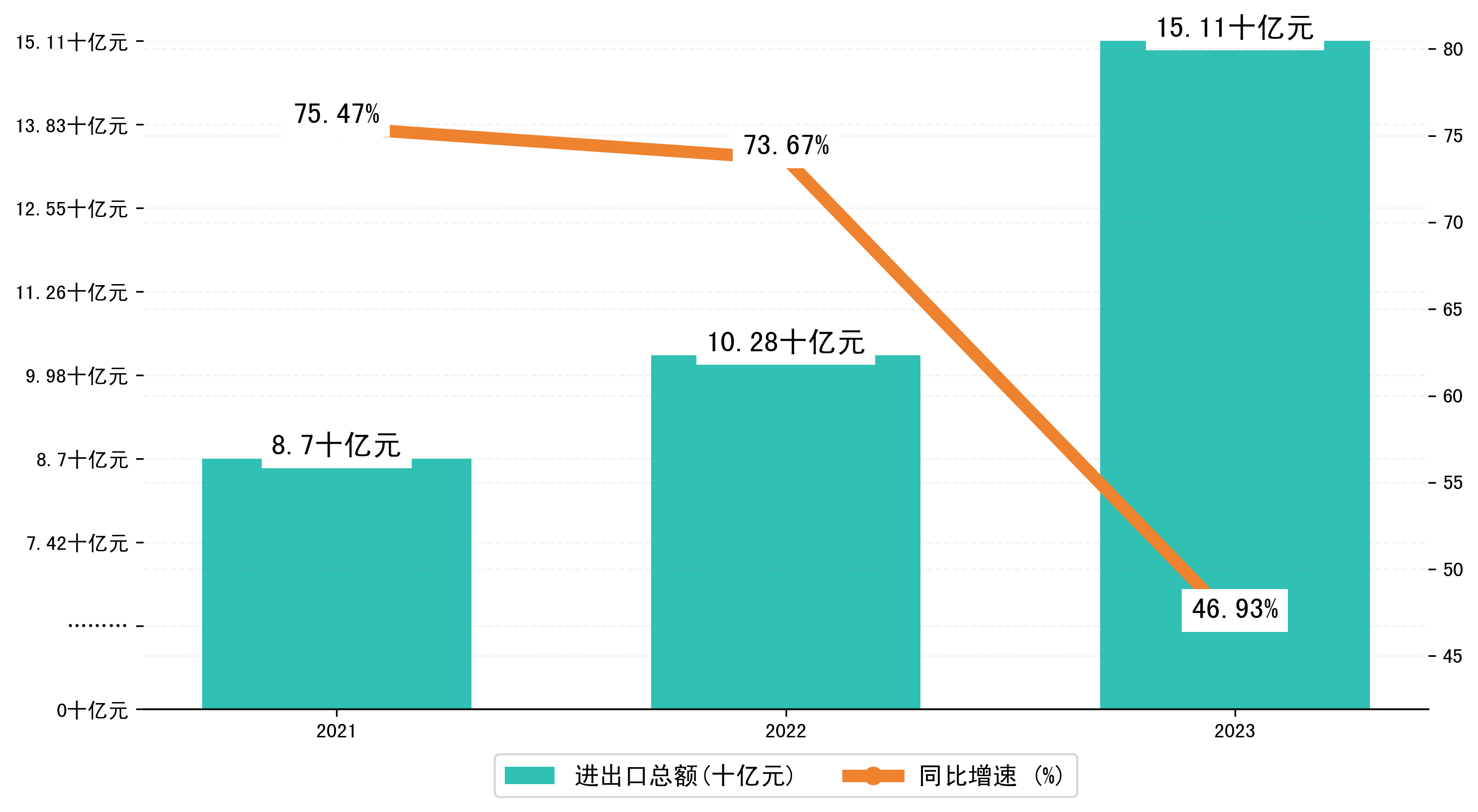 以人民币计,2023年1-2月吉安市进出口总额为151,0961.1223万元,相比上年同期增加了48,2608.2438万元,同比增加了46.90%。