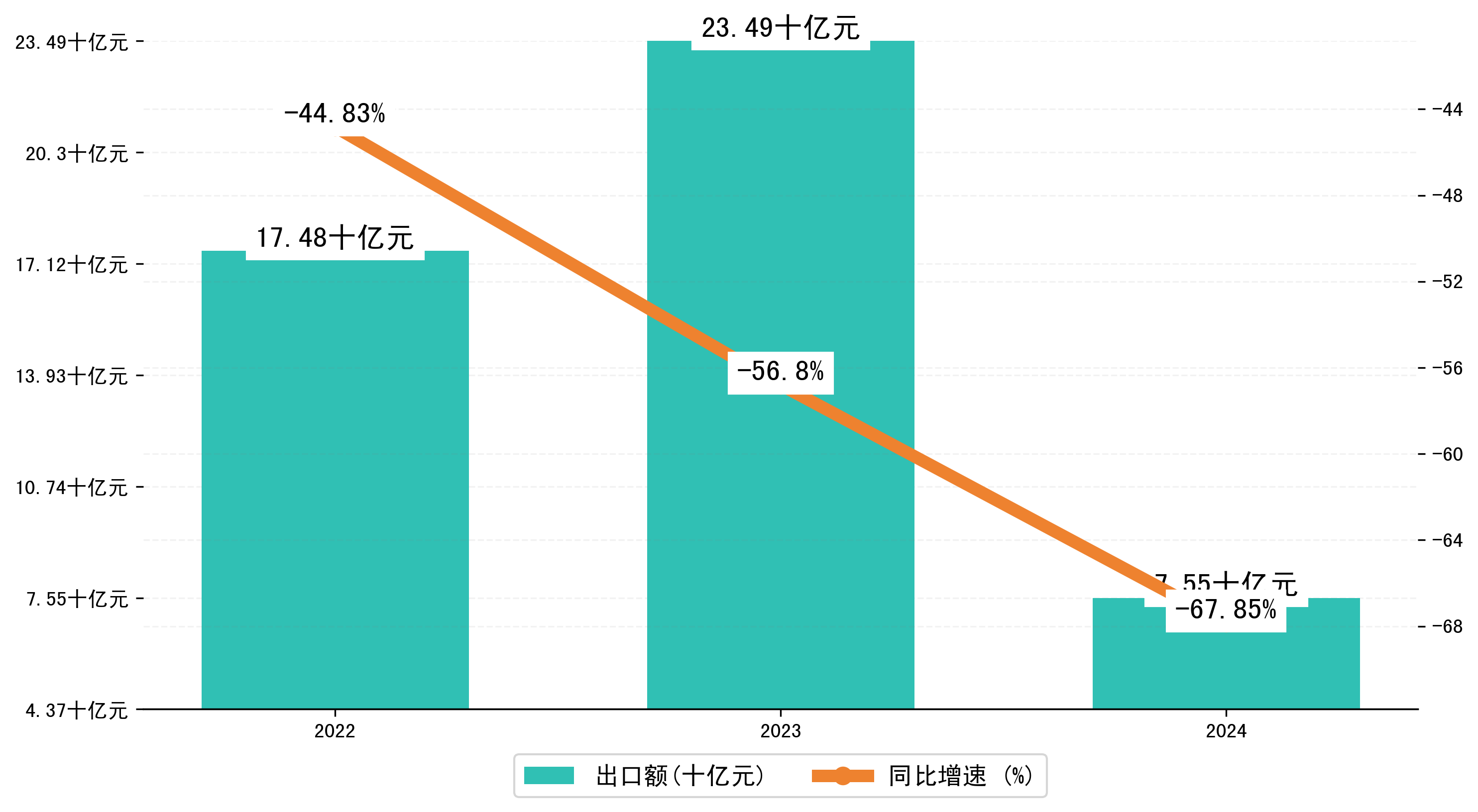以人民币计,2024年1-4月吉安市出口额为75,5329.3842万元,相比上年同期减少了159,3863.9848万元,同比减少了-57.90%。