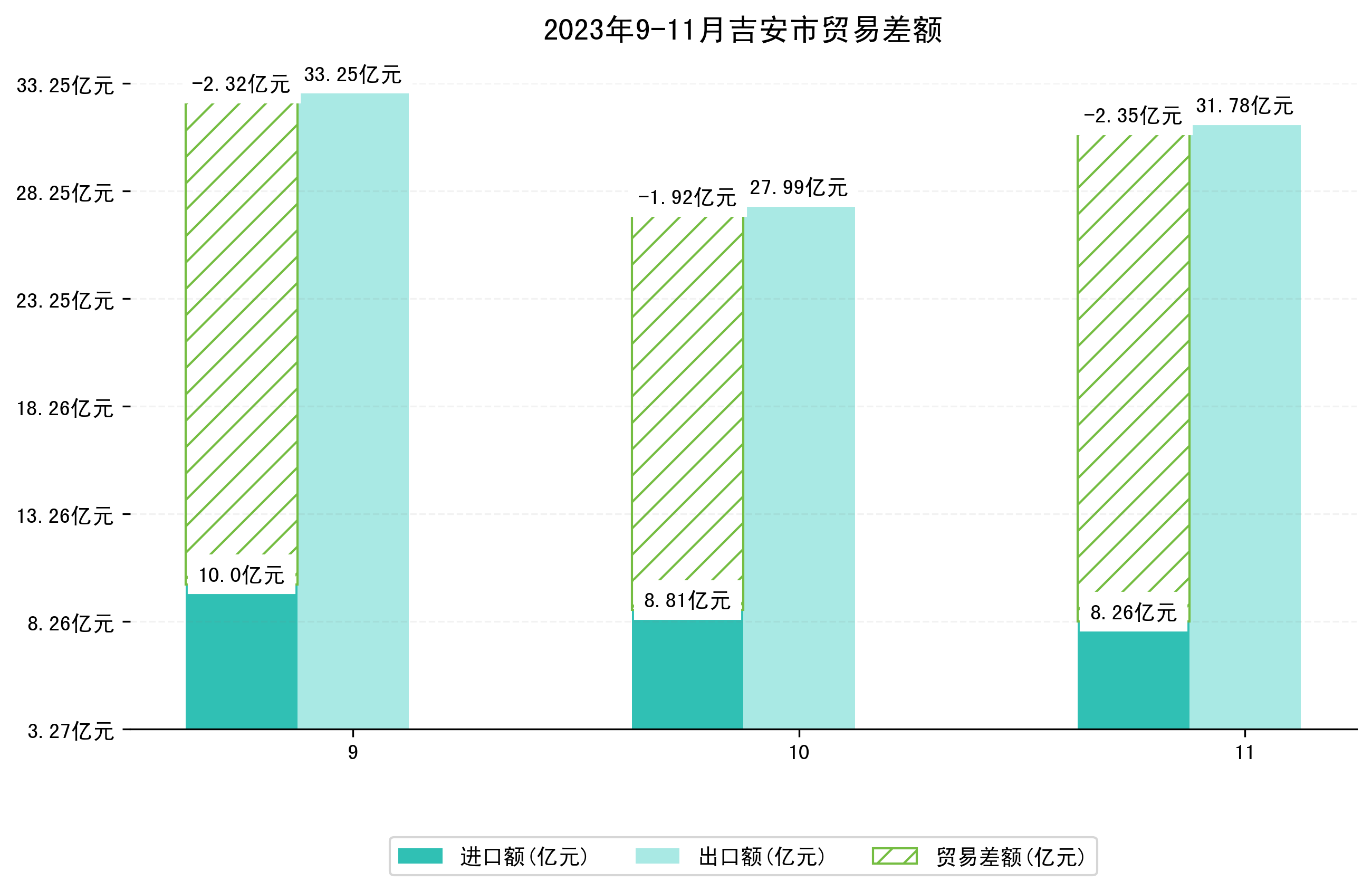 (图一:2023年9-11月吉安市进出口总额)