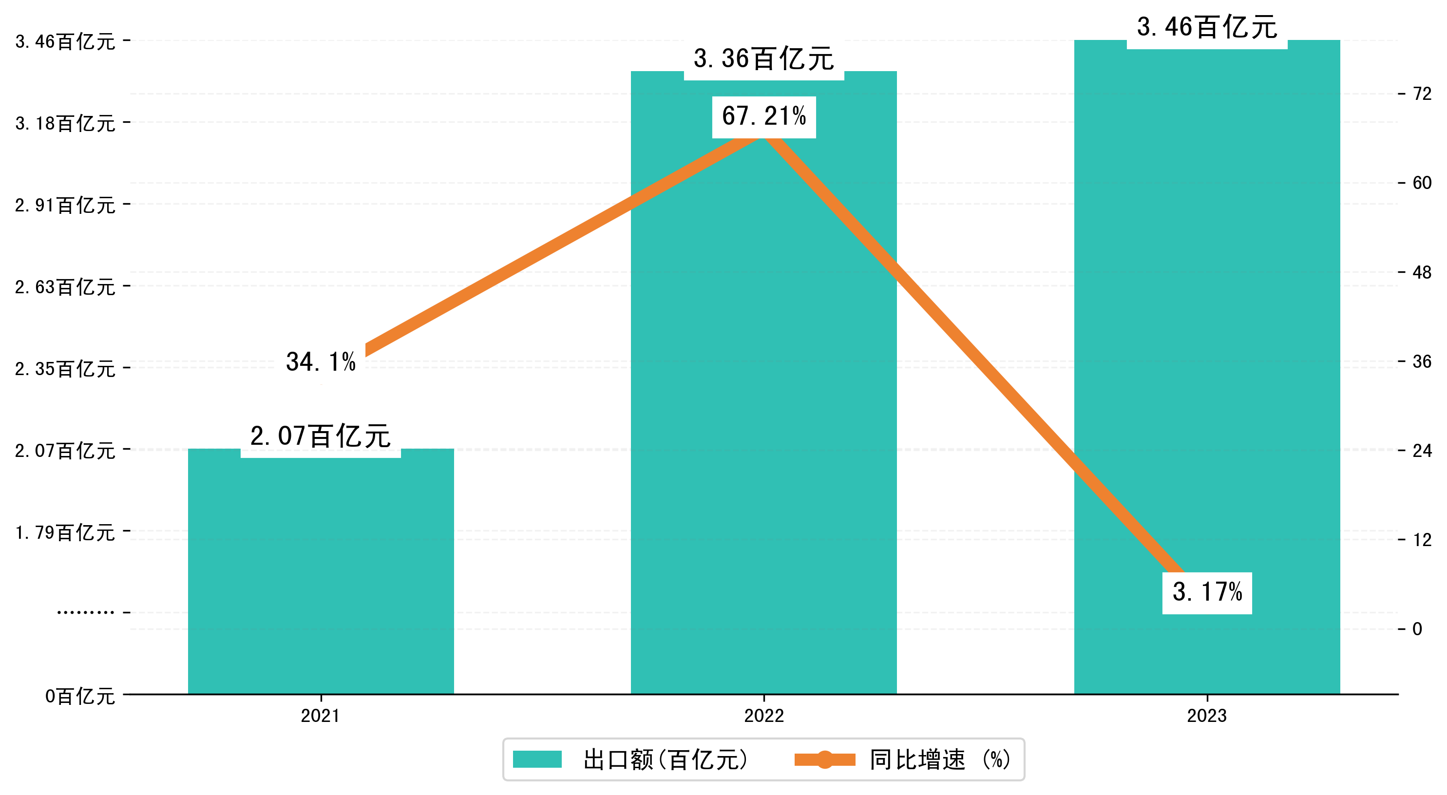 以人民币计,2023年1-7月吉安市出口额为346,2089.3948万元,相比上年同期增加了10,6426.8586万元,同比增加了3.70%。