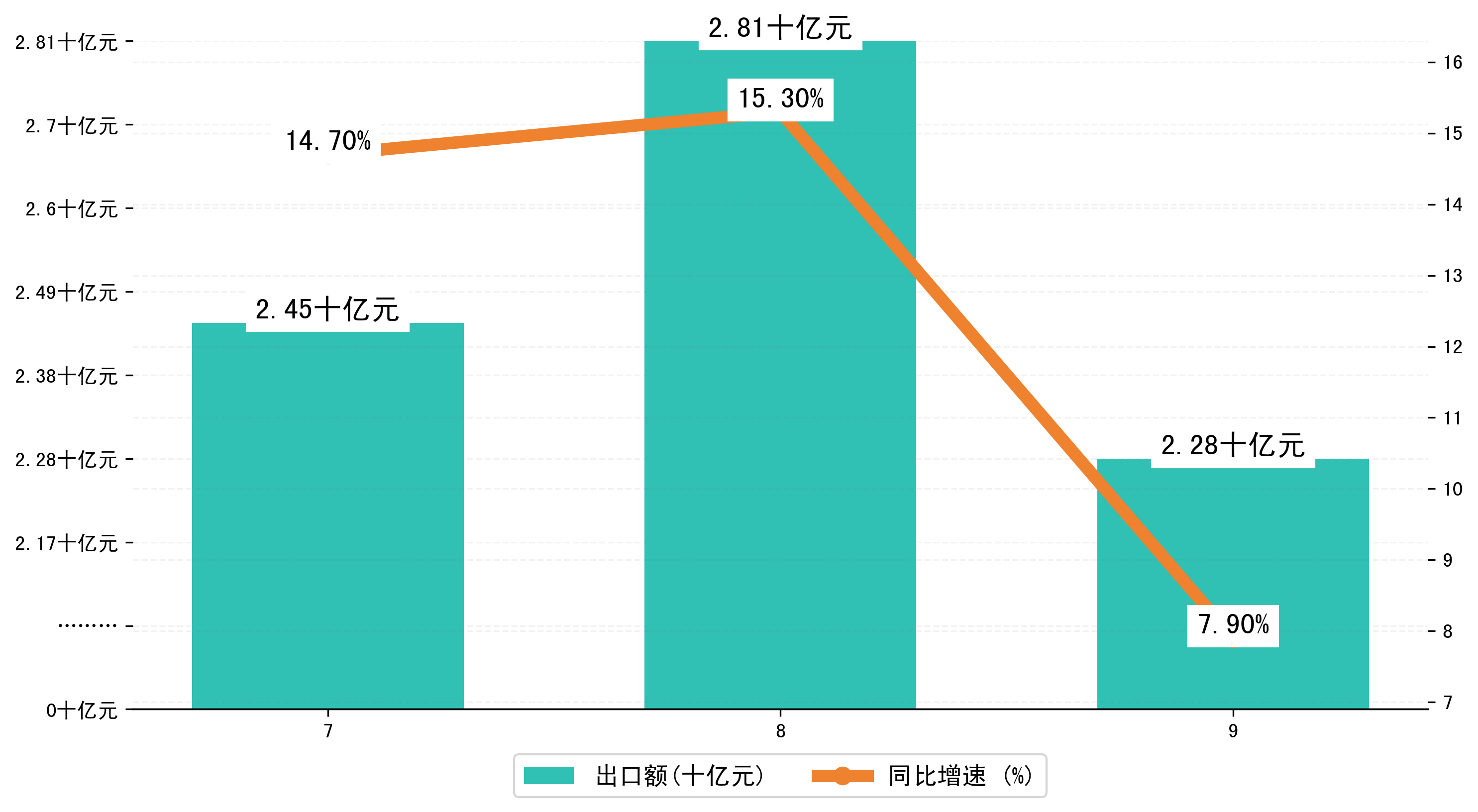 以人民币计,2025年1-9月吉安市出口额为213,4117.2989万元,相比上年同期增加了15,0714.7177万元,同比增加了7.90%。