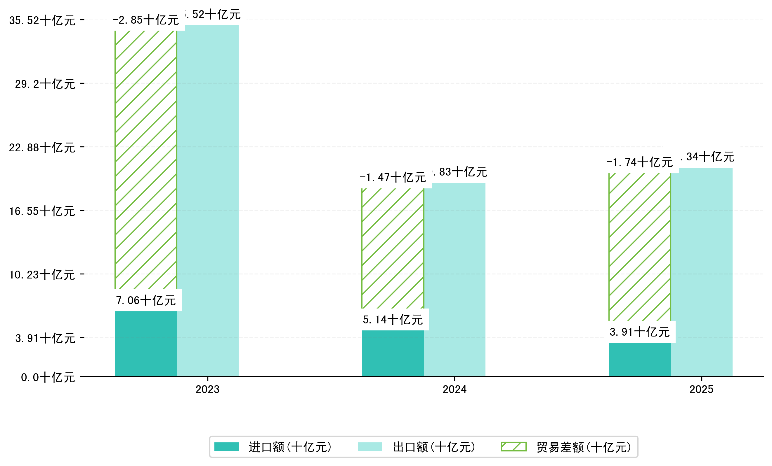 以人民币计,2025年1-9月吉安市贸易差额为174,3071,2264万元(贸易顺差),相比上年同期增加了27,3354,9231万元,同比增加18.6%。