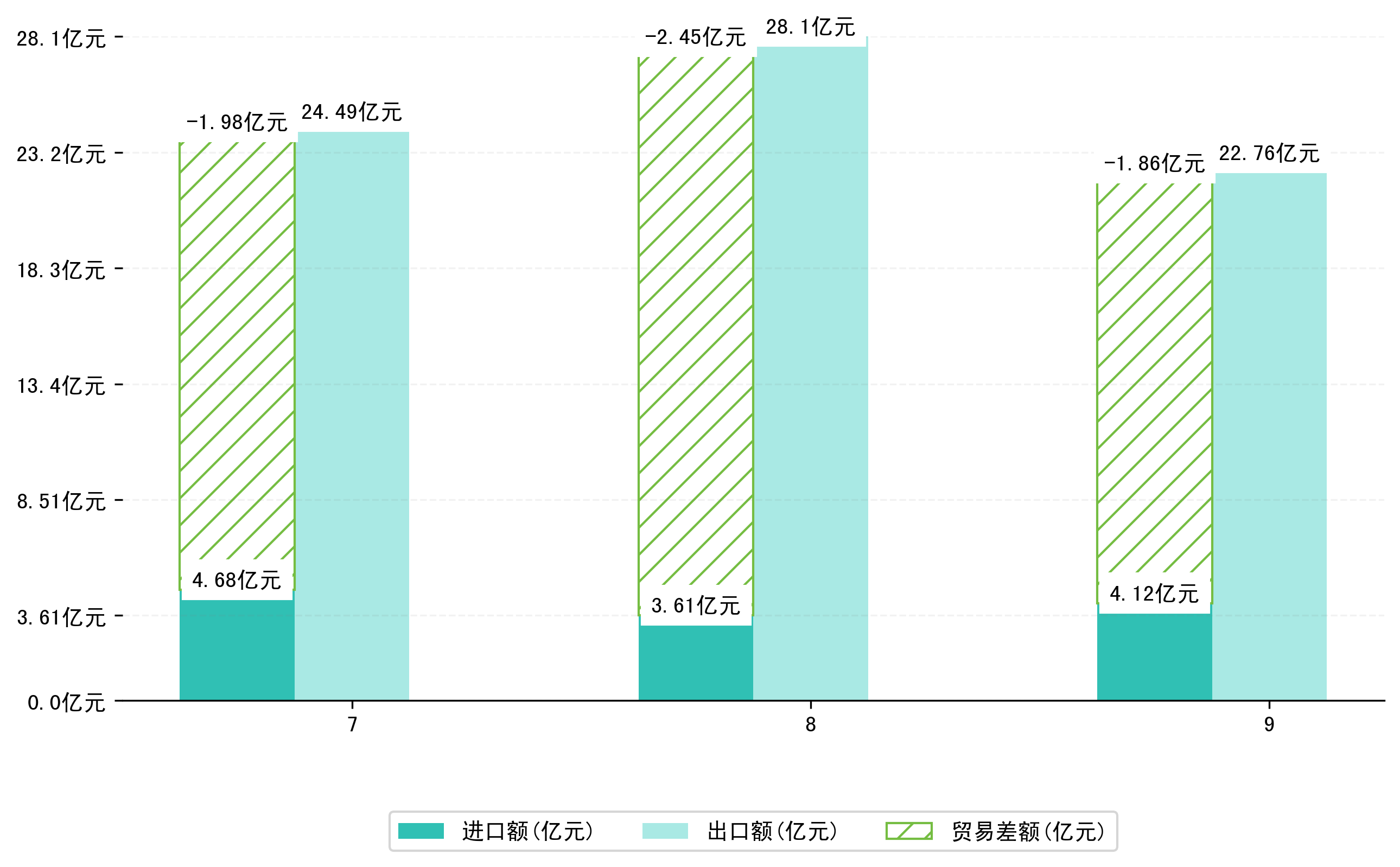 以人民币计,2025年9月吉安市贸易差额为18,6348,1730万元(贸易顺差),相比上月减少了5,8522,4451万元,即8111,1991万美元;相比上年同期减少了7,8440,4231万元,同比减少-29.62%。