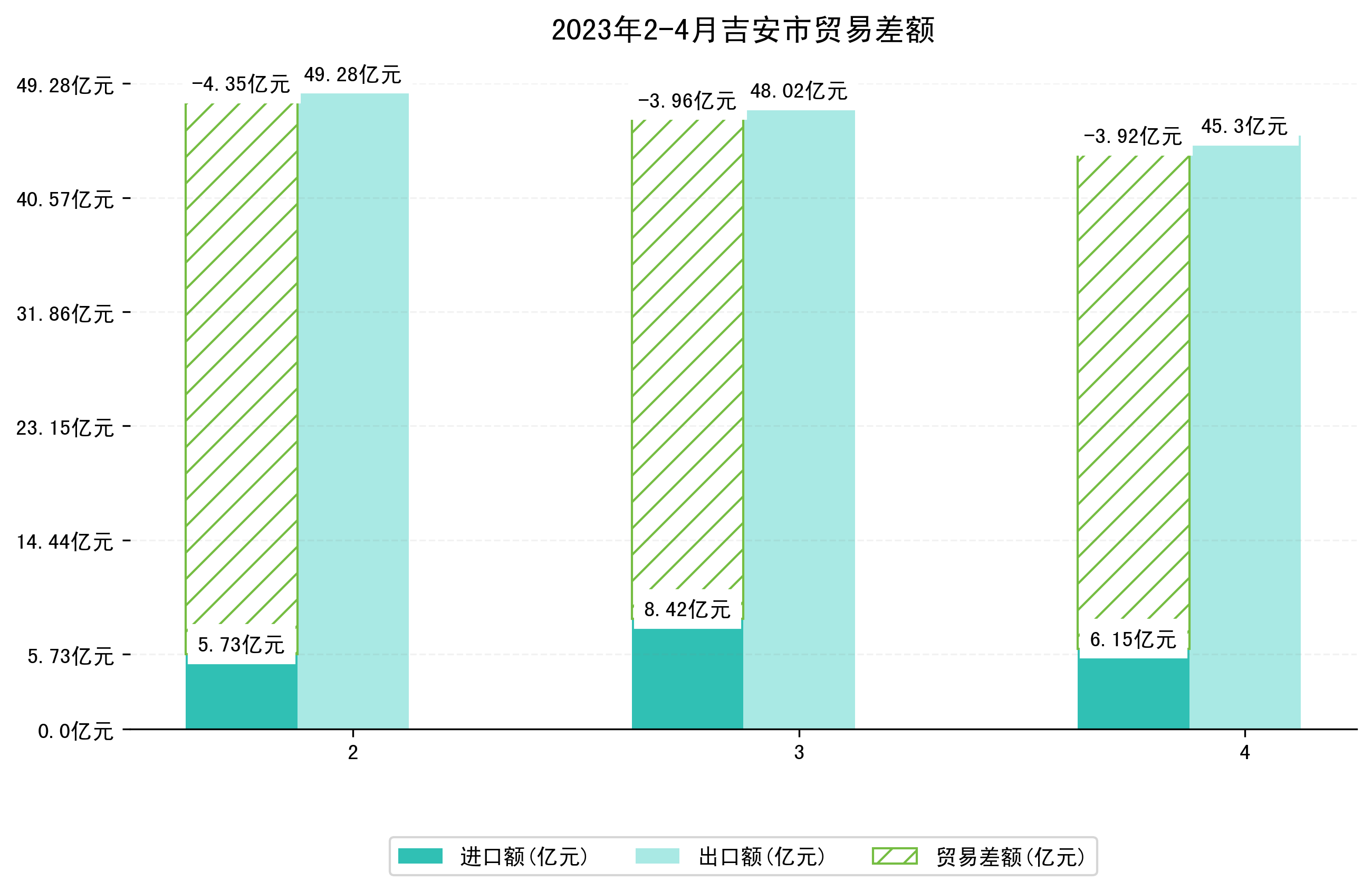 (图四:2023年2-4月吉安市贸易差额)
