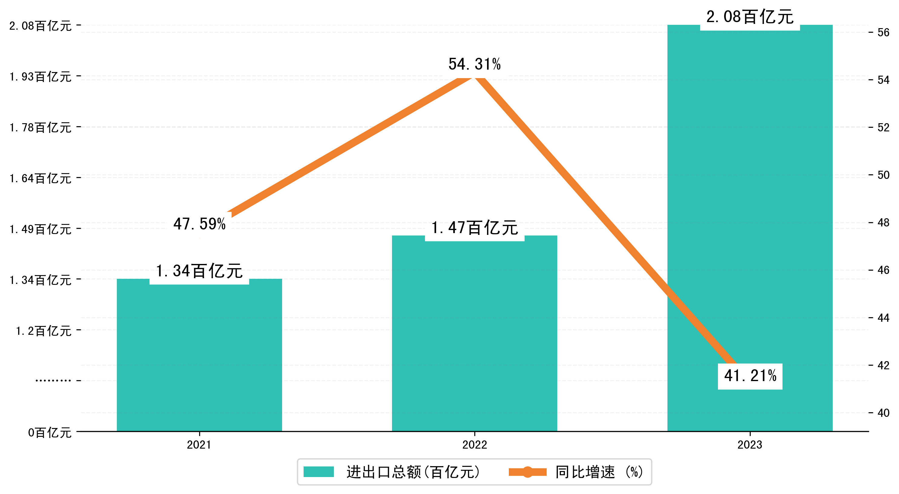 以人民币计,2023年1-3月吉安市进出口总额为207,5185.7576万元,相比上年同期增加了60,5585.6406万元,同比增加了41.20%。