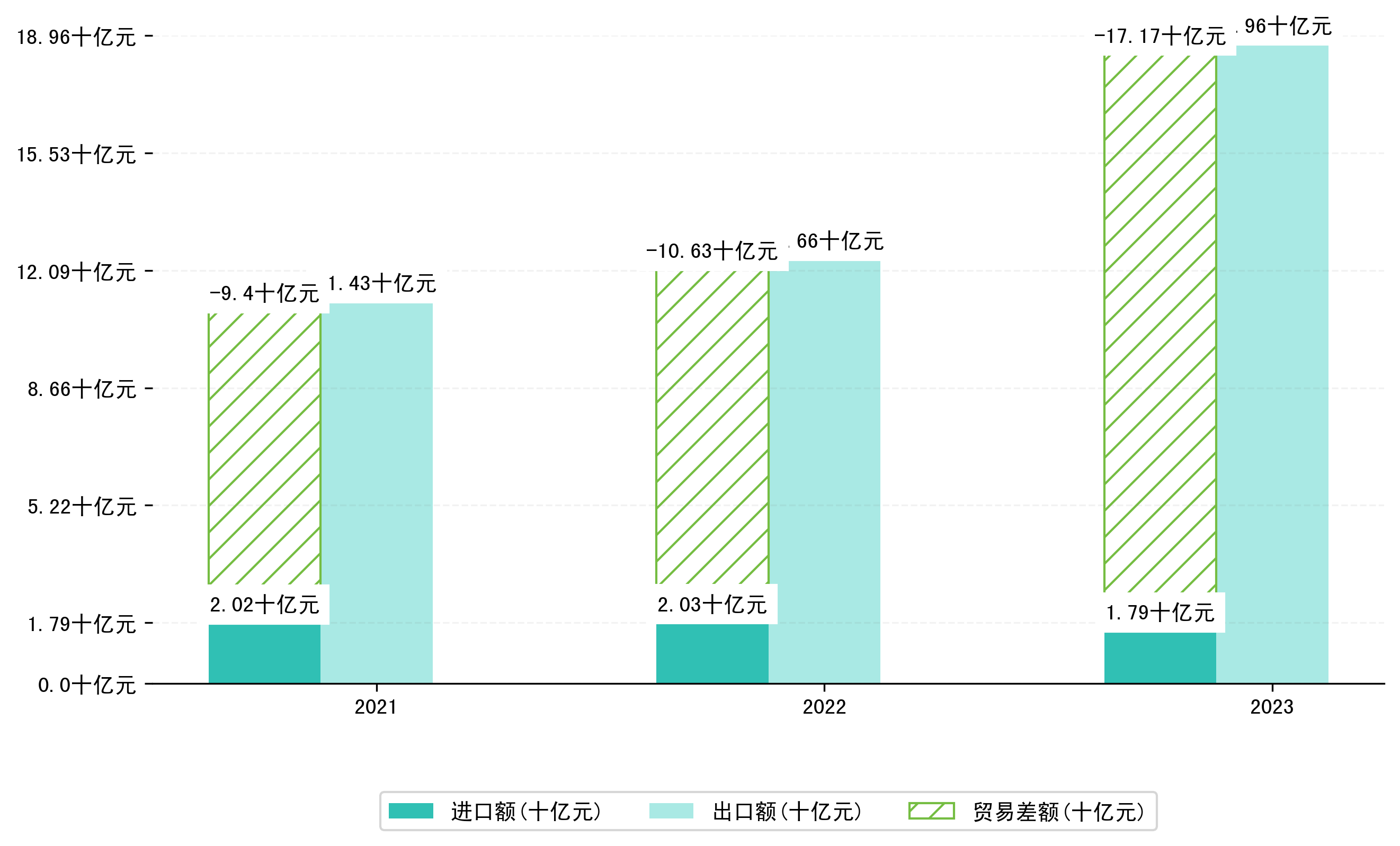 以美元计,2023年1-3月吉安市贸易差额为24,9261,9766万美元(贸易顺差),相比上年同期增加了8,2222,8196万美元,同比增加49.22%。