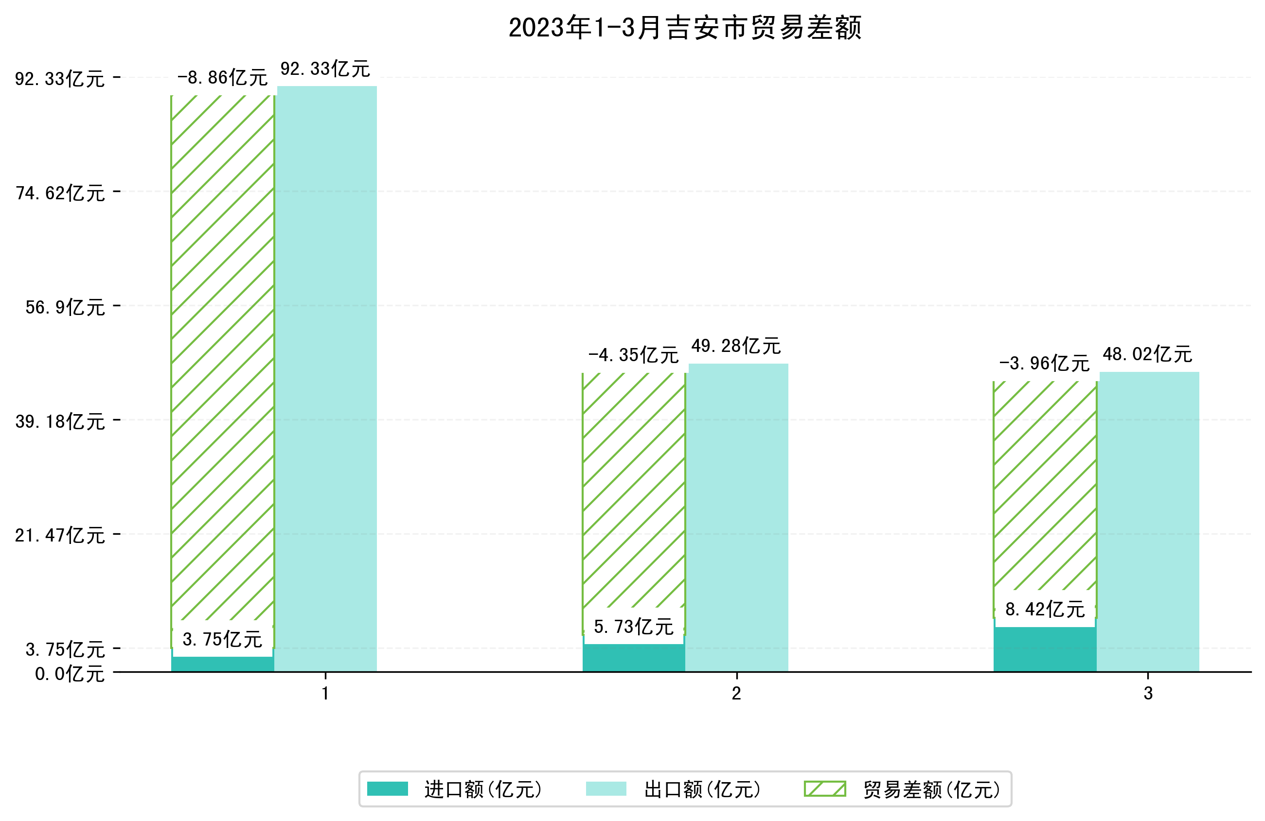 2023年3月吉安市进出口总额及进出口差额统计分析
