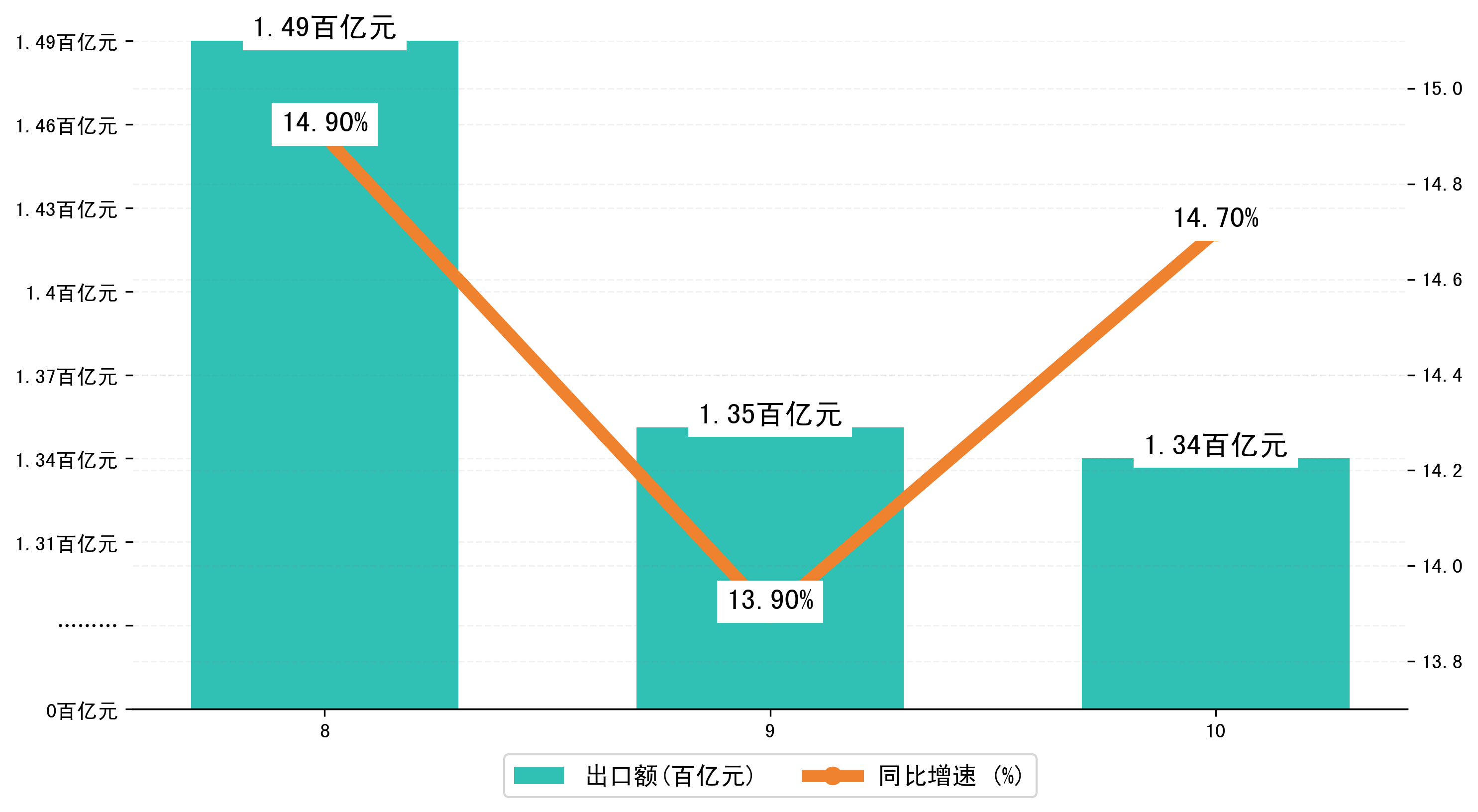 (图二:2024年8-10月江门市出口额)