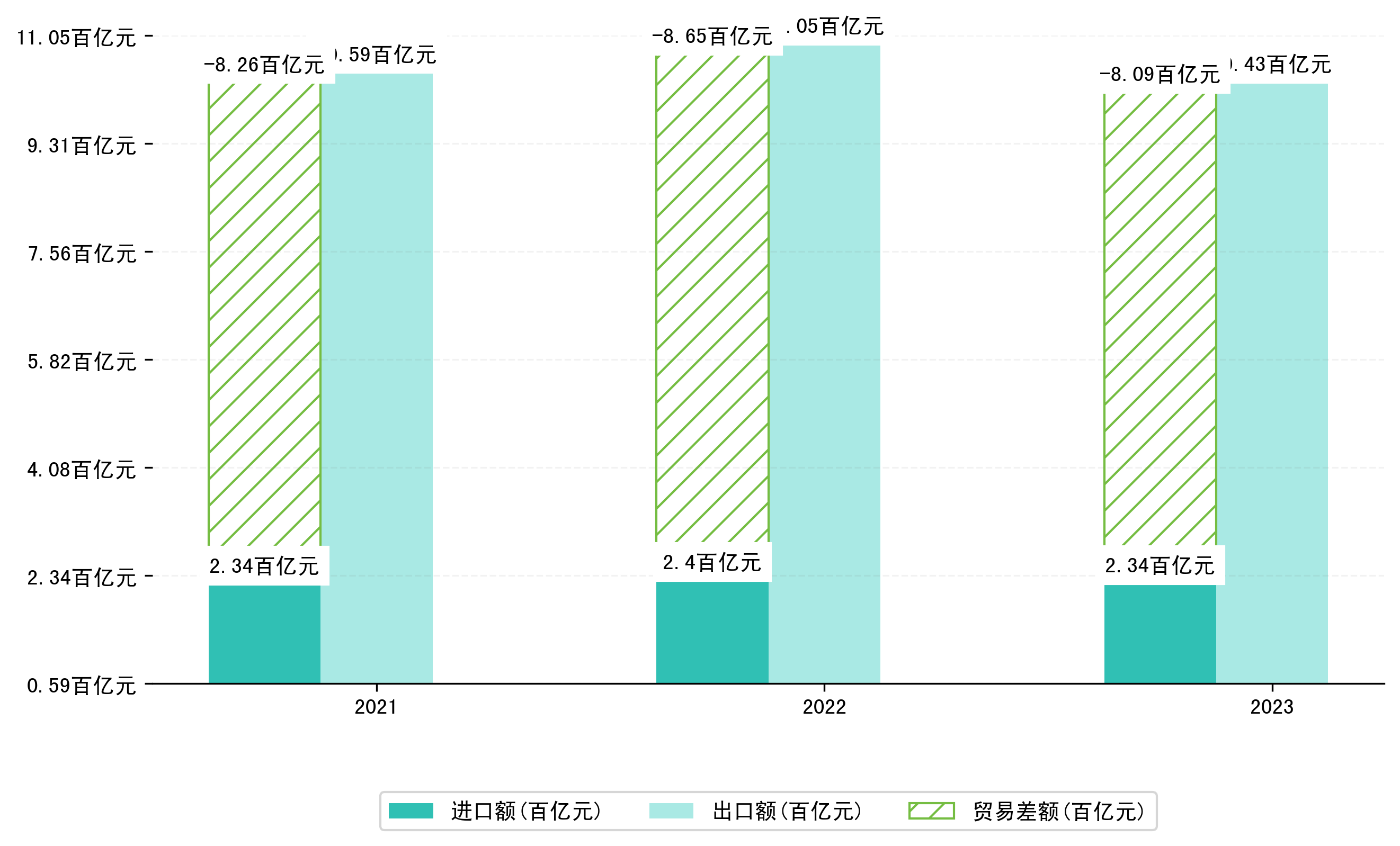 以美元计,2023年1-9月江门市进出口总额为182,9210.743万美元,相比上年同期减少了23,0492.849万美元,同比减少-11.30%。