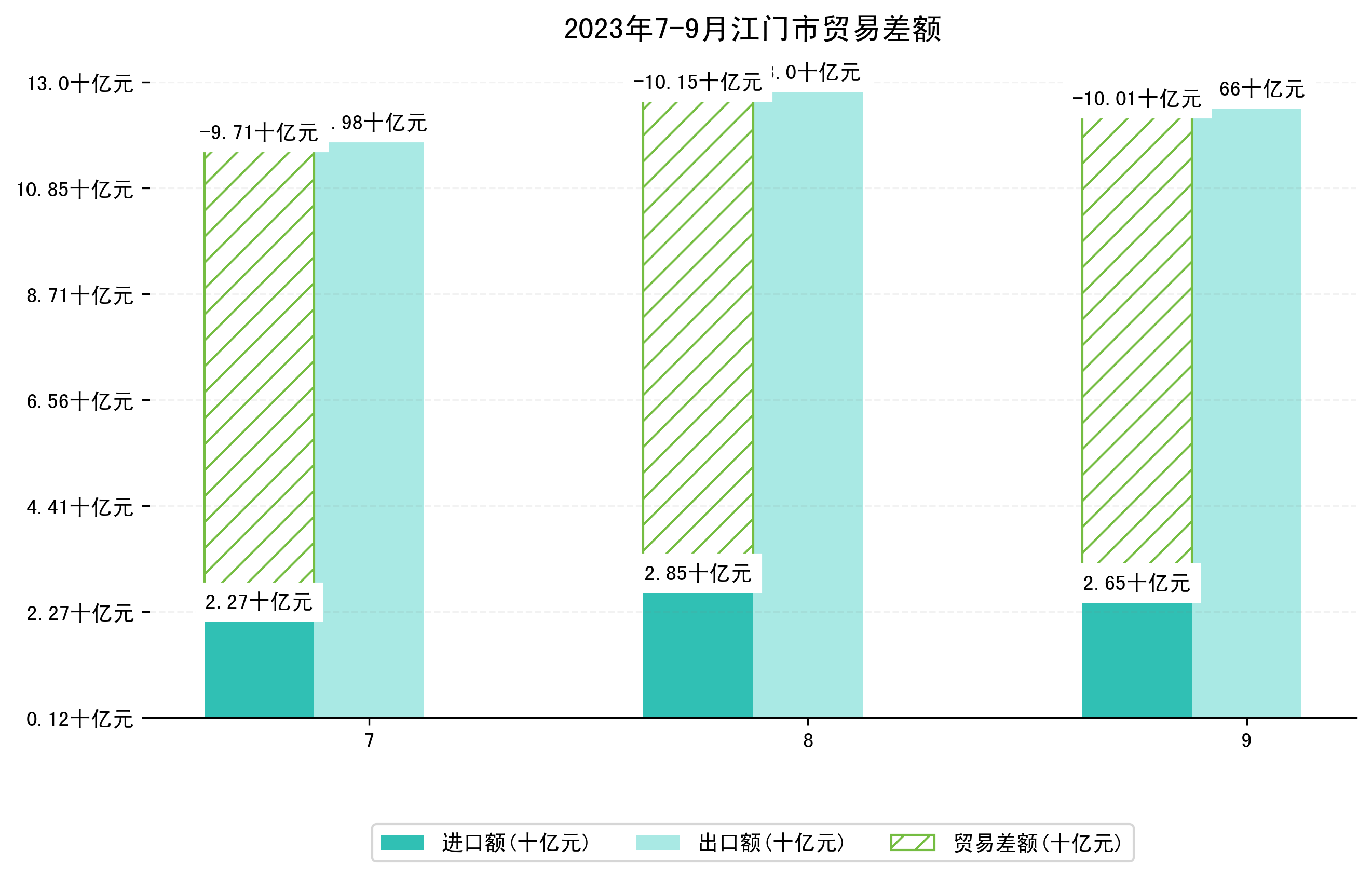 一、2023年9月江门市单月出口总额及进出口差额统计分析