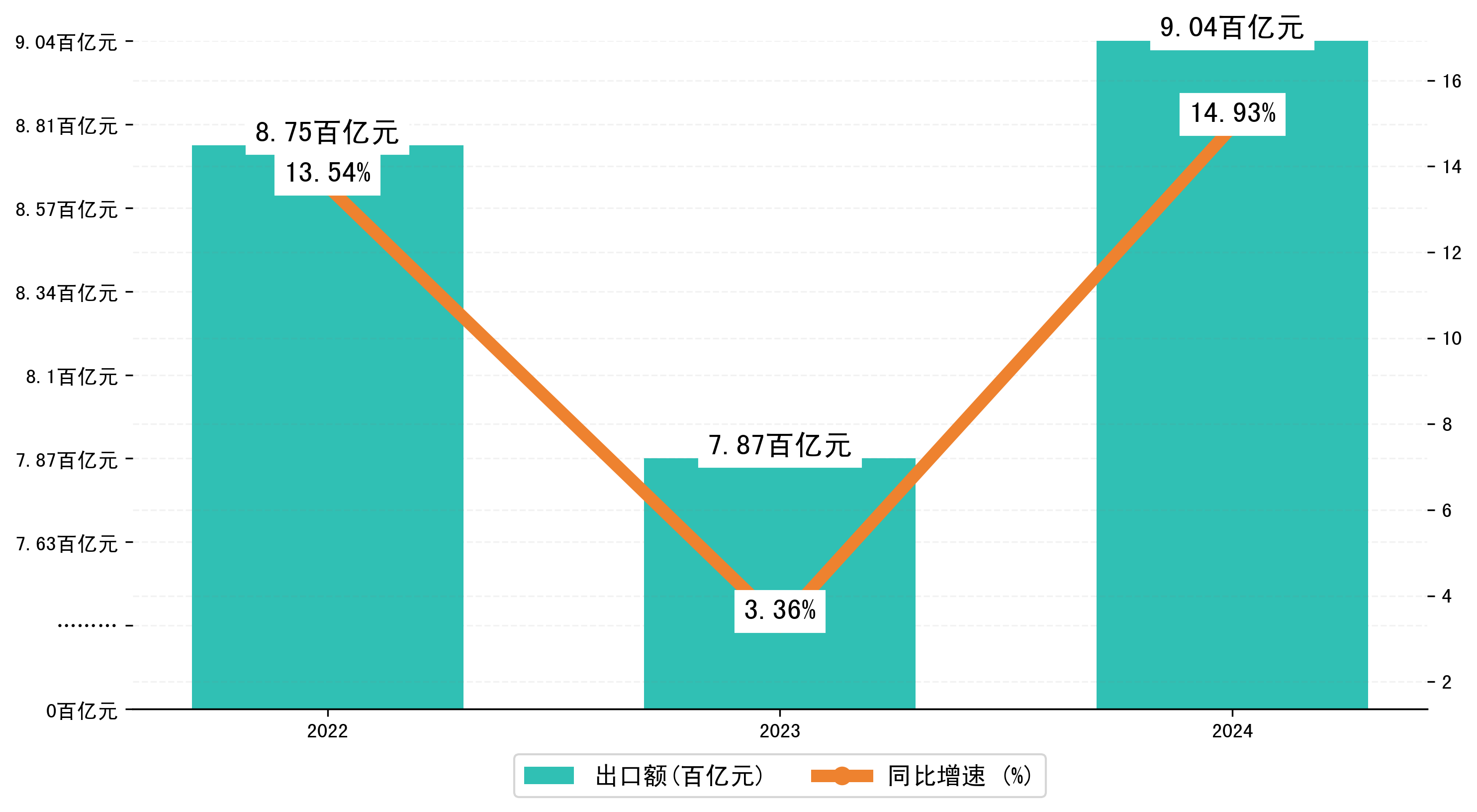 以人民币计,2024年1-7月江门市出口额为904,2213.8688万元,相比上年同期增加了117,4324.5771万元,同比增加了14.90%。