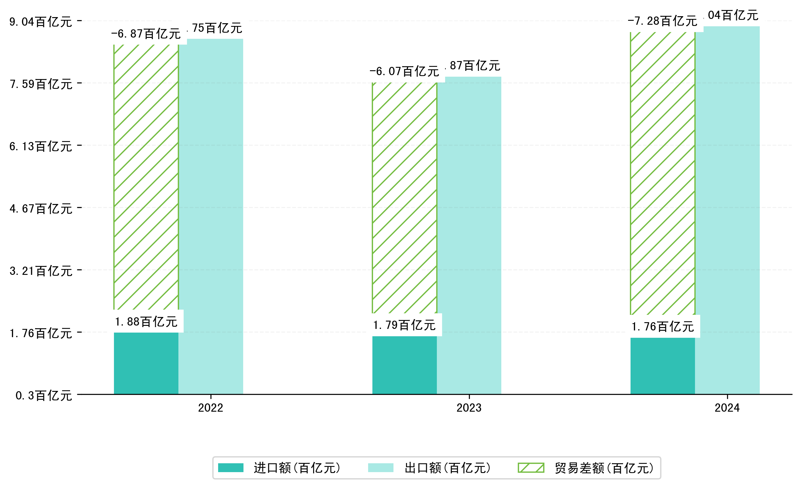 以人民币计,2024年7月江门市贸易差额为113,4354,4995万元(贸易顺差),相比上月减少了2,6407,5452万元,即3960,0486万美元;相比上年同期增加了16,3538,9961万元,同比增加16.85%。
