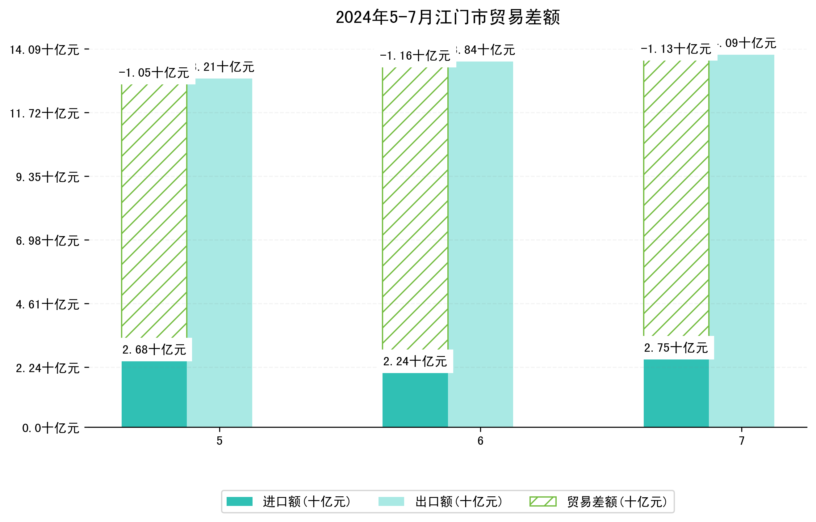 一、2024年7月江门市单月出口总额及进出口差额统计分析