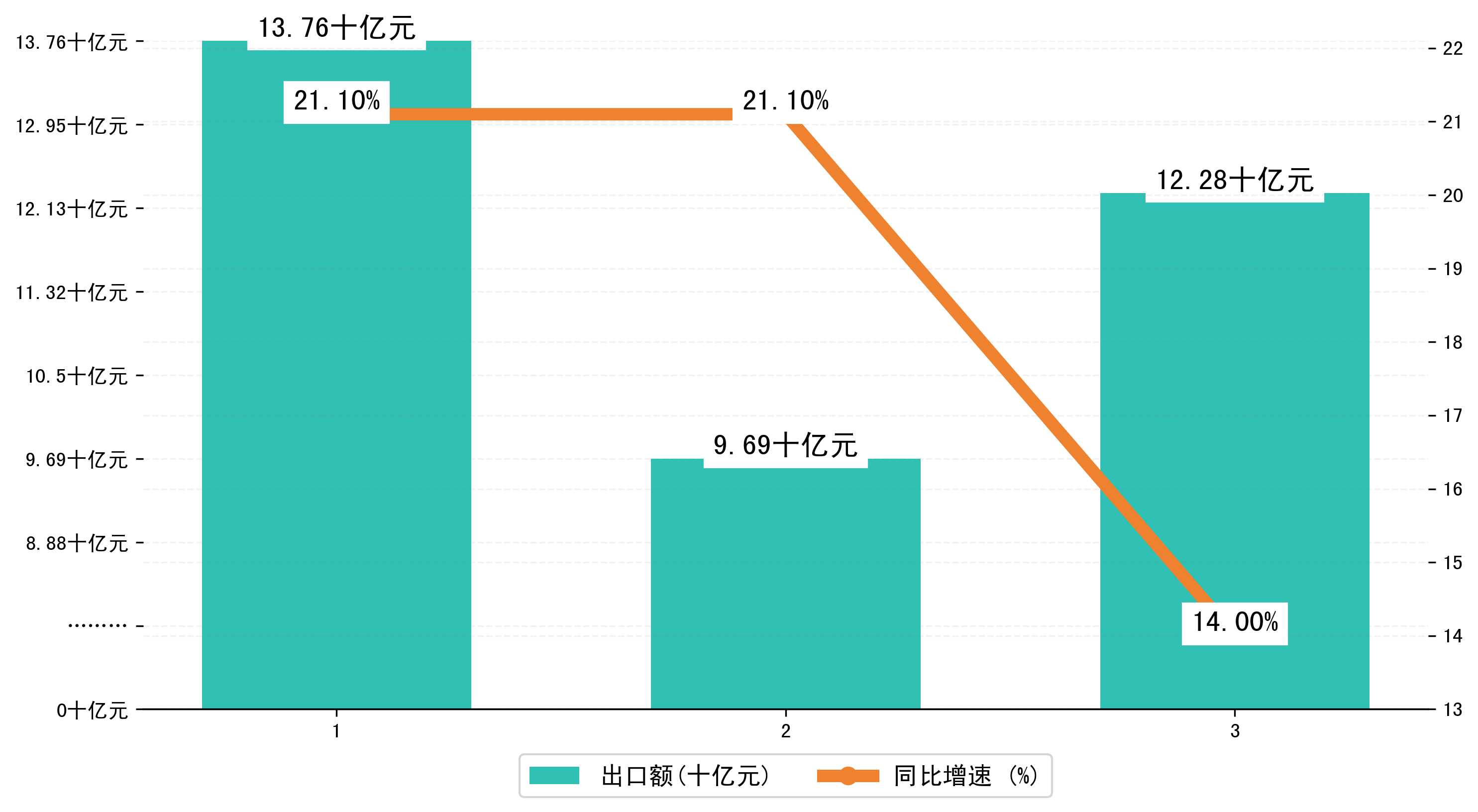 以人民币计,2024年1-3月江门市出口额为357,2861.5983万元,相比上年同期增加了43,8322.2915万元,同比增加了14.00%。