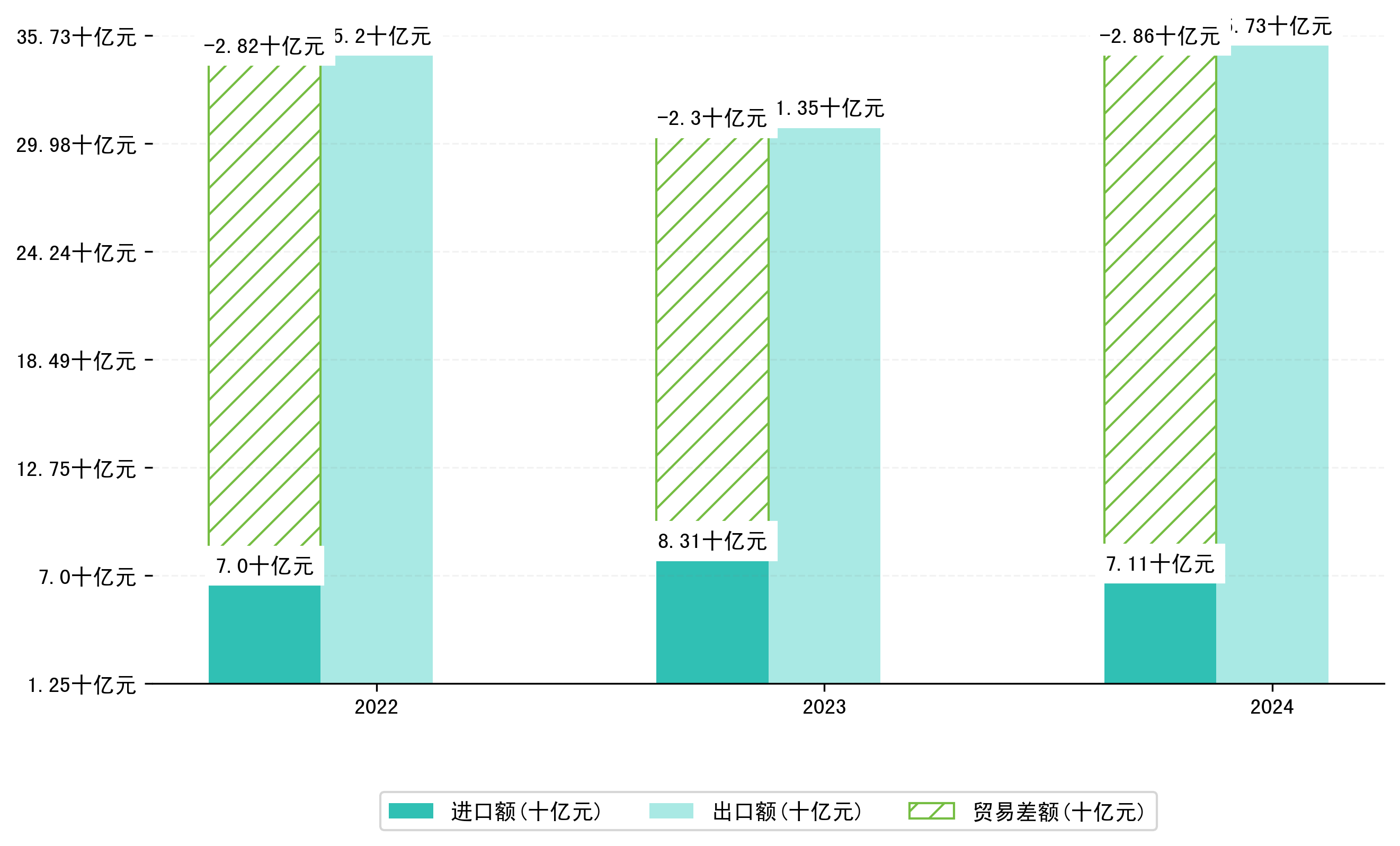 以人民币计,2024年1-3月江门市贸易差额为286,1493,0942万元(贸易顺差),相比上年同期增加了55,7660,2474万元,同比增加24.21%。