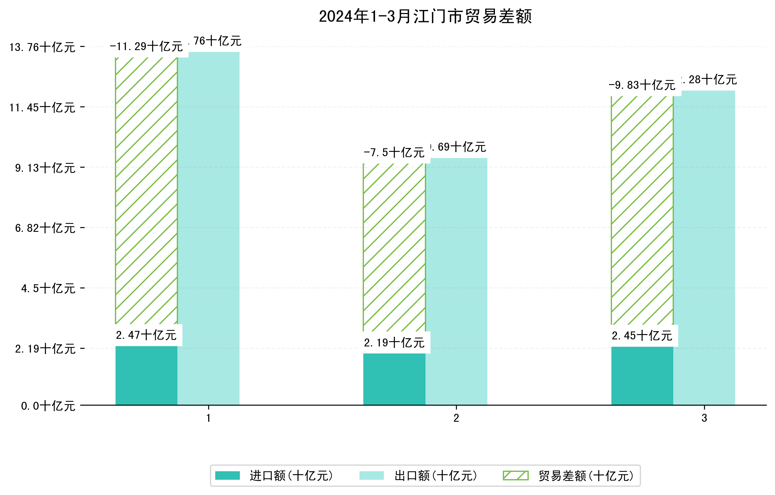 一、2024年3月江门市单月出口总额及进出口差额统计分析