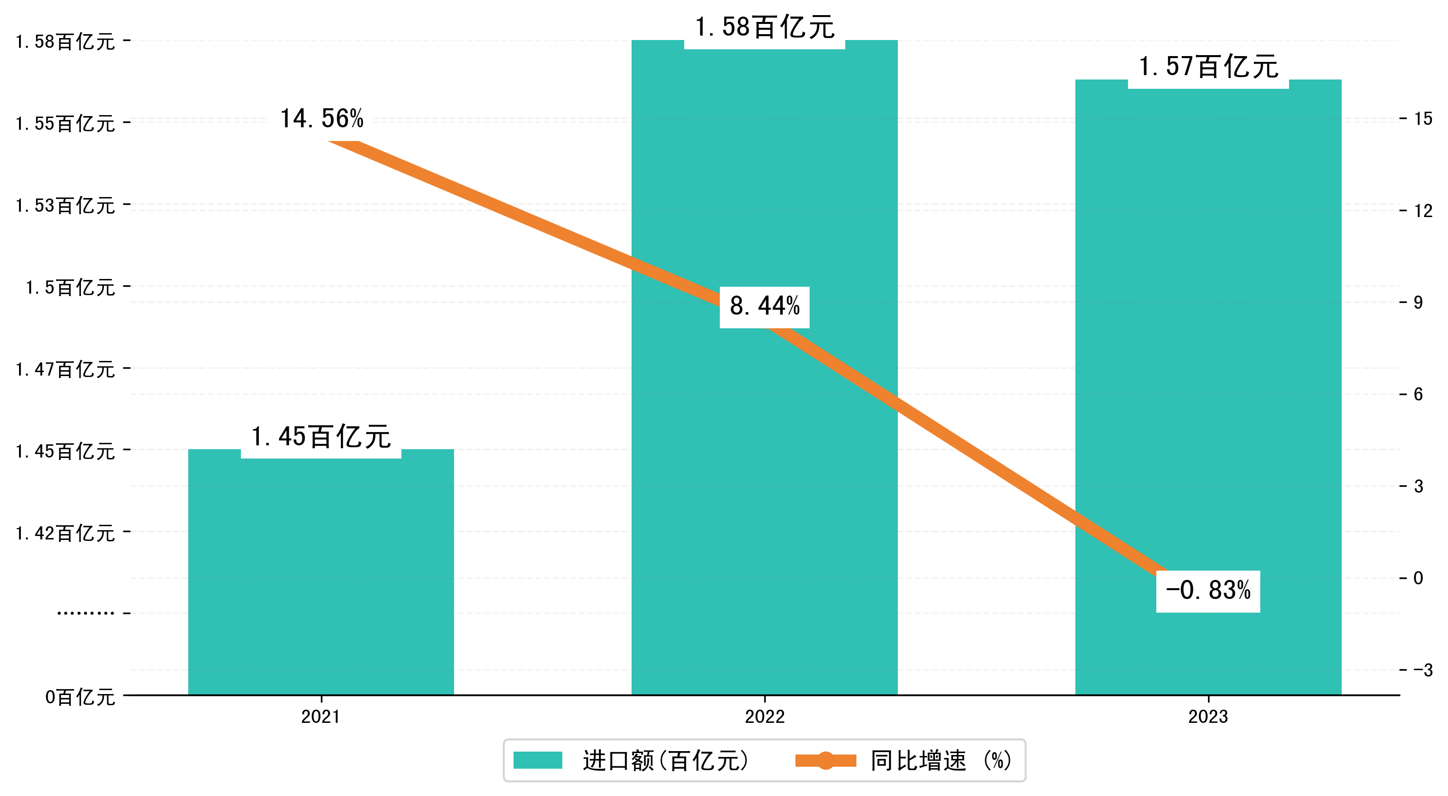 以人民币计,2023年1-6月江门市进口额为156,7996.9365万元,相比上年同期减少了1,3048.4698万元,同比减少了-1.60%。