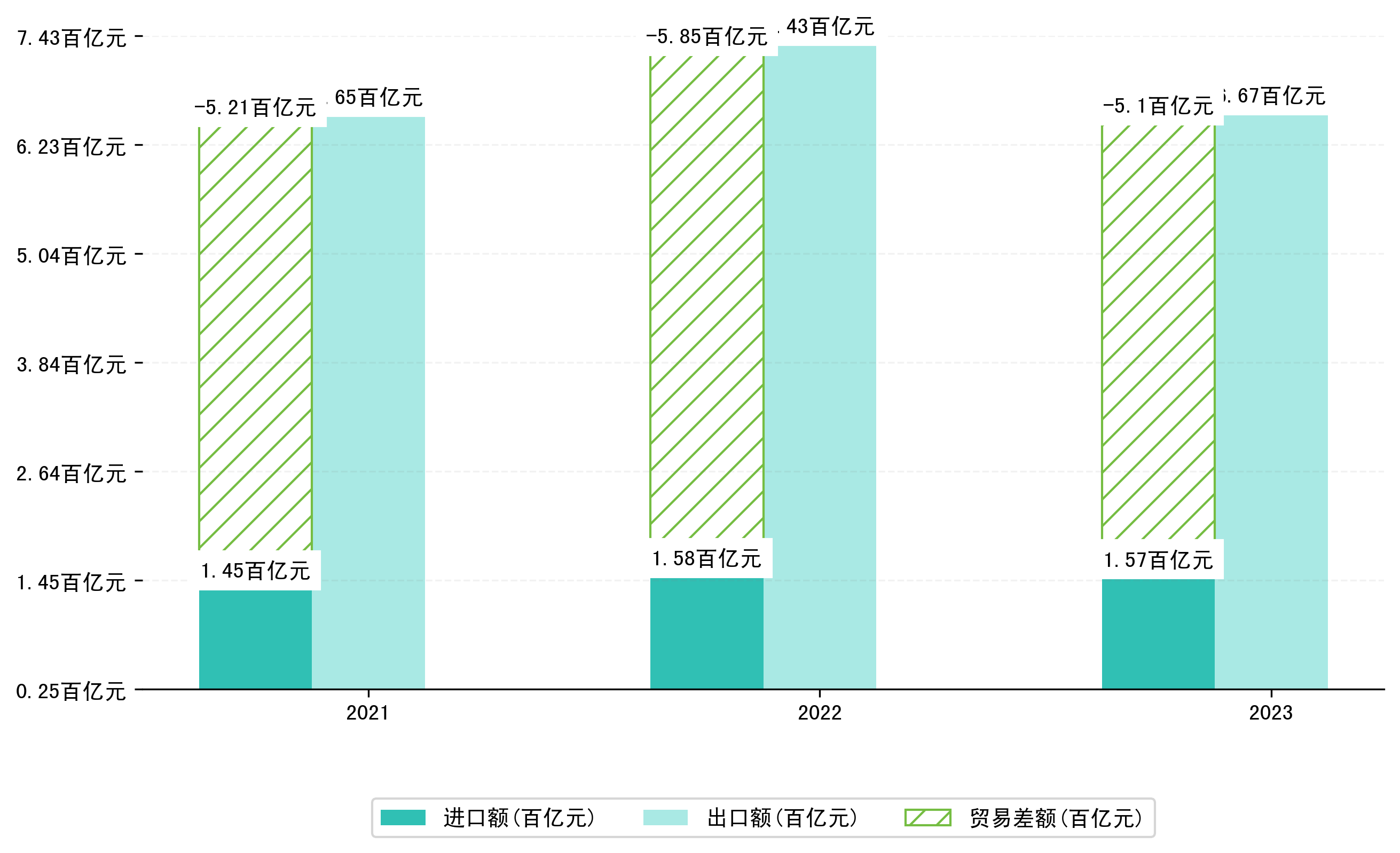以人民币计,2023年6月江门市贸易差额为95,3028,2706万元(贸易顺差),相比上月增加了3,8092,6247万元,即3681,8563万美元;相比上年同期减少了6,4429,0720万元,同比减少-6.33%。