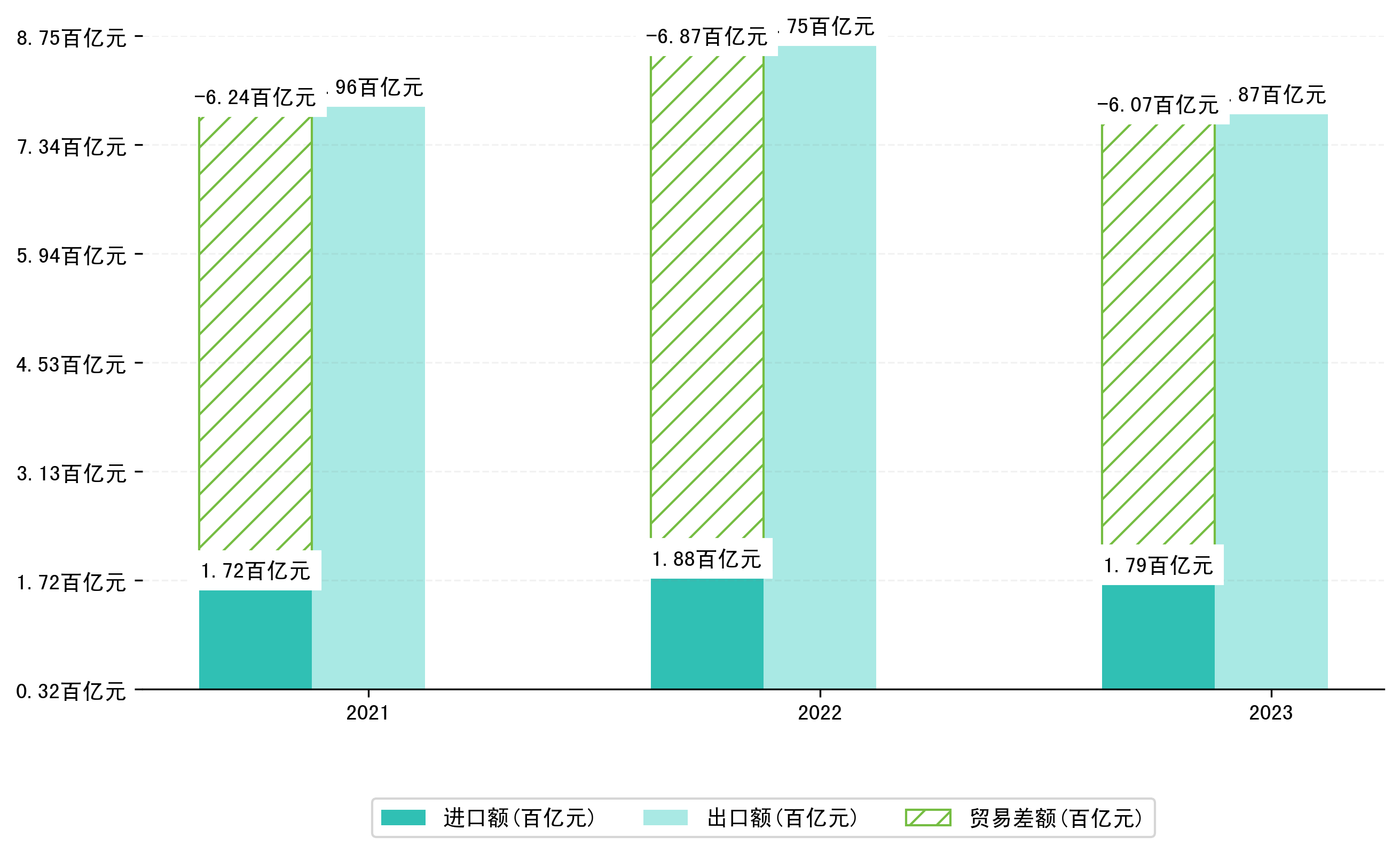 以美元计,2023年1-7月江门市贸易差额为87,5841,5765万美元(贸易顺差),相比上年同期减少了18,6702,5176万美元,同比减少-17.57%。
